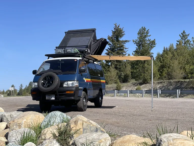 Your epic Montana adventure awaits! You have a chance to cruise in one of the most unique and fun camper vans in the state! Check out our Right Hand Drive, Japanese import (km/h) turbo diesel! Fully customized by Yotaimports and ready to fulfill your camping/exploring needs! The lifted frame, oversized tires and 4-wheel drive makes pulling in and out of camping sites a breeze! The van includes a pop up tent with full size bed and full size bed on a fold-out platform in the van. Great for a family of 5 or 2 couples! Solar panels power the fridge and interior dimmer LED lights. This 4x4 van also includes a cooking stove, cutting board, and drawers for extra storage. Way cheaper than a rental car and a hotel, plus way more fun! Please be advised it is a converted van, so no bathroom or shower.What's includedThe Dreamseeker is the perfect van for 2 couples or family of 5. It has a cooking stove that pops out the back end for easy use with pots, pan, camping chairs (at your request), bedding for the bed inside the van but will need to bring bedding for the tent or vice versa.RecommendationsThere is a solar running fridge, so you will need to keep an eye on it. If the battery gets to low you may have to unplug. We recommend putting a block of ice in the fridge or a back up cooler.Other things to noteThis vehicle is not made for mudding!! It needs to stay on maintained trails. Also please be aware this is a RIGHT HAND DRIVE DIESEL van. So there may be a learning curve if you are unfamiliar.