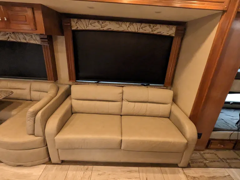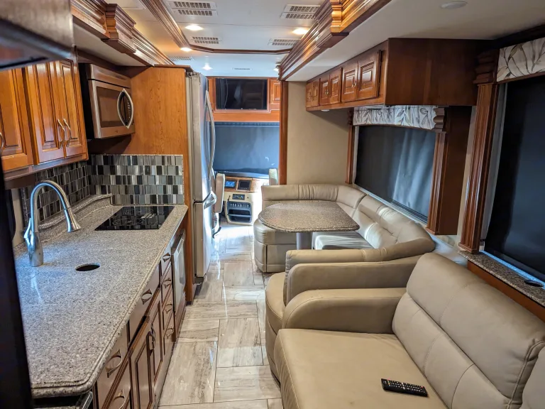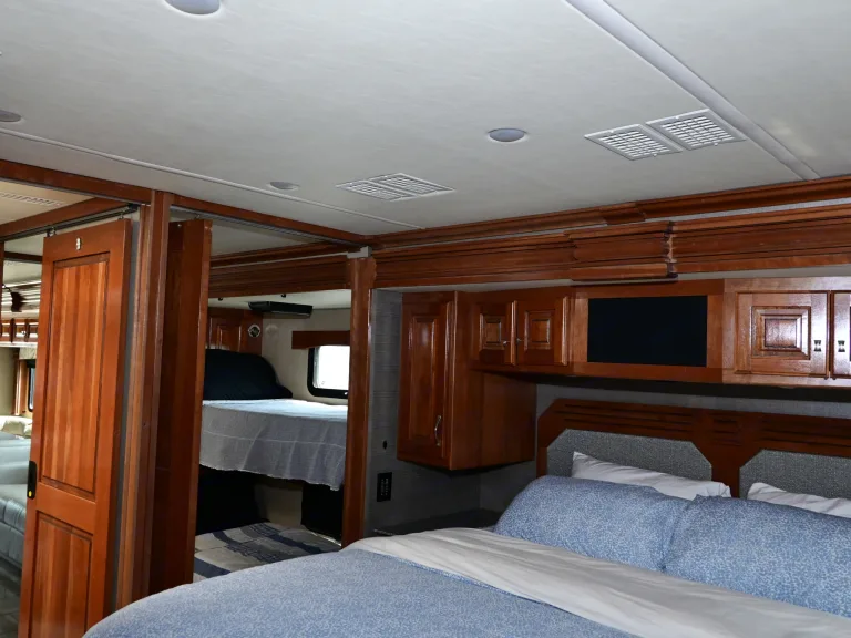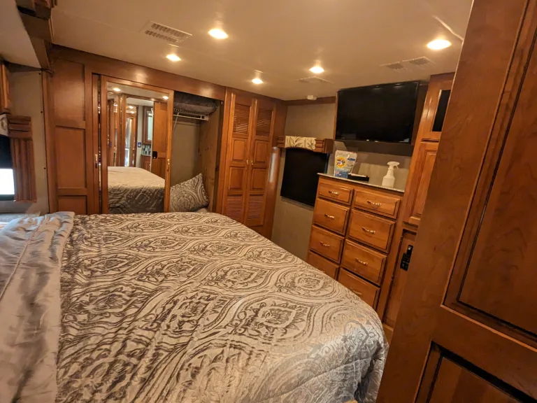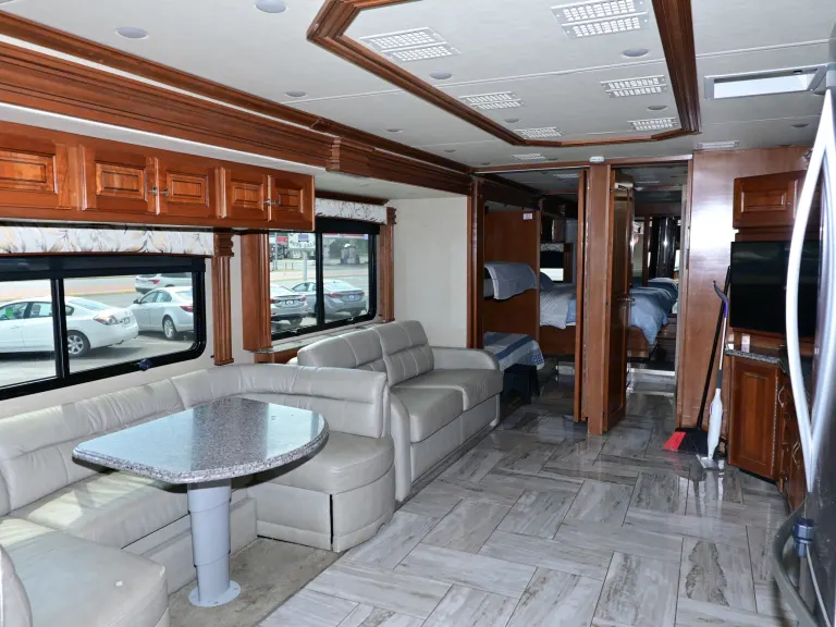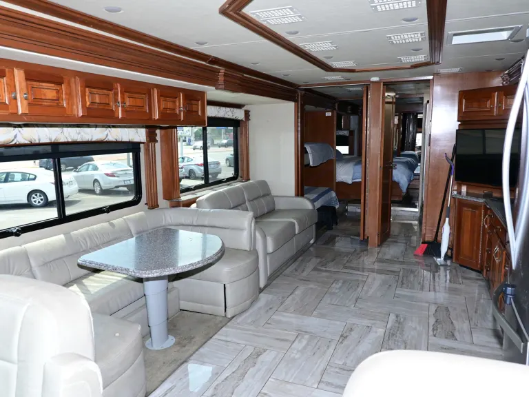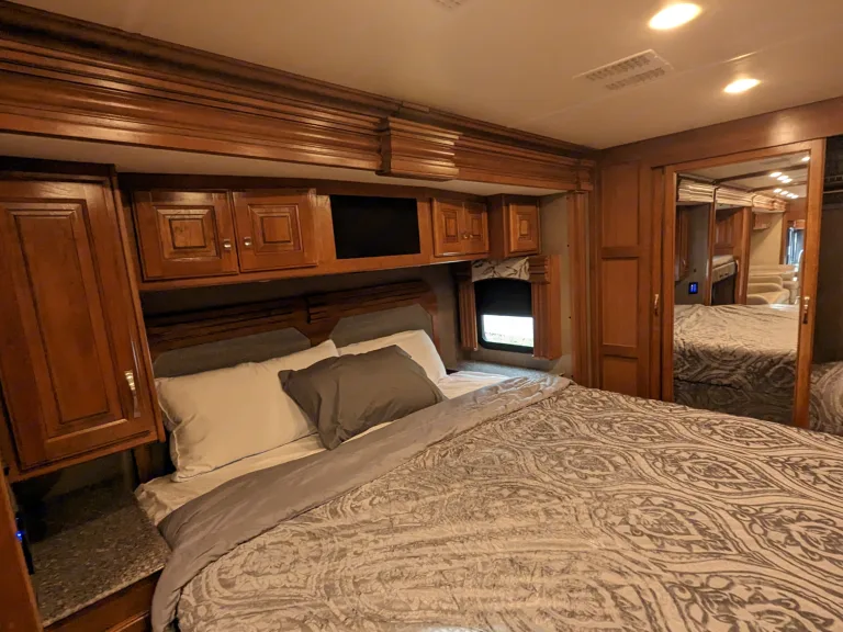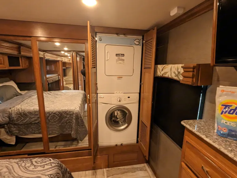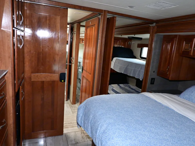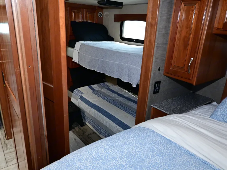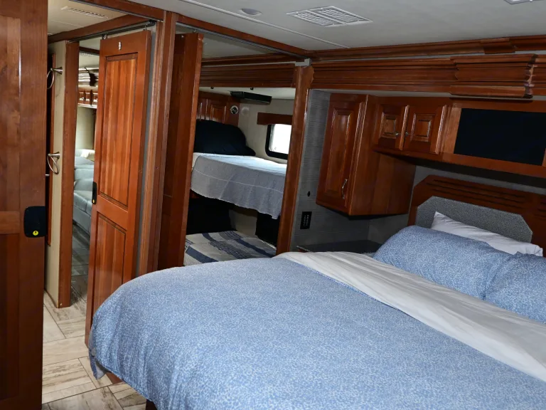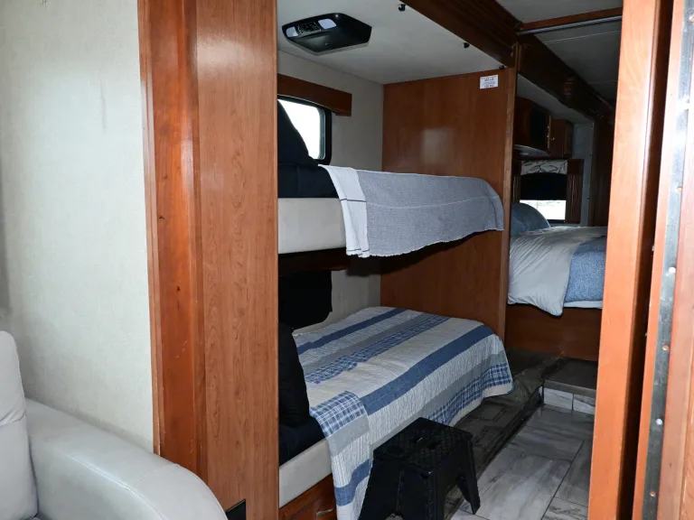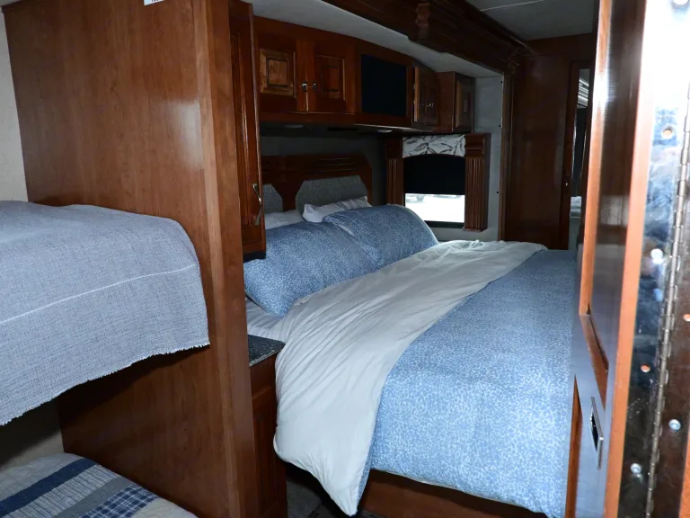 Bunkhouse Floor Plan Loaded up and ready to go!This coach is a dream to drive and easy to handle. 360 hp, 6 speed Allison transmission automatic.Master bedroom with King Size , Fire TV. Washer and Dryer, giant closet and a safe to secure your valuables.Two Bunks with DVD and Game hook ups for the Kids.Full bath with shower and on demand hot water system so you'll never run out!Fold out air mattress on the sofa bed, with another TV in the living area. Very comfortable and easily holds two.The dinette also converts and can fit a couple of smaller people.Full Kitchen Microwave convection oven, dishwasher and keurig coffee maker. Pots and pans included.3 LED TV inside with 1 outside. Full awning . Surround sound, Fire TV, SiriusXM, CD , Navigation.Automatic leveling jacks All push buttons. Super Nice Coach!What's includedLet us know if you think you need something for your trip and we'll either include it or let you know how to accomplish your vacation goals!All beds will come dressed and cleanAll dishes / cookware are included. There will be some paper products such as papertowels and RV Toilet paper (ABSOLUTELY NO STANDARD TP CAN BE USED!), paper plates etc. RecommendationsGlacier National Park: No trip to Flathead Valley is complete without a jaunt through the majestic Glacier National Park. With over 700 miles of well-maintained hiking trails, this national gem offers jaw-dropping views, historic lodges like the iconic Many Glacier Hotel, and a wildlife extravaganza. And guess what? Glacier isn’t just for summer! It’s a winter wonderland, too, welcoming visitors year-round.Flathead Lake Fun: As Montana’s largest natural freshwater lake, Flathead Lake is the epicenter of water-based fun. Fancy fishing? Check. Craving a swim? Check. In the mood for boating? Check. The lake’s got it all. And with picturesque camping and picnic spots along the shoreline, it’s the perfect setting for a day of relaxation and fun.Wild and Scenic Rivers: With a whopping 219 miles of wild and scenic rivers, the Flathead Valley is a water lover’s paradise. Whether you’re up for a peaceful paddle, a thrilling rafting ride, or a leisurely float, these rivers guarantee an experience to remember.Arts and Entertainment: The valley is alive with the rhythm of art and culture. Music lovers, get ready for the Crown of the Continent Guitar Festival and Festival Amadeus. Art buffs, prepare to be amazed at Arts in the Park or the Bigfork Festival of the Arts. And theater enthusiasts, the Bigfork Summer Playhouse and Alpine Theatre Company have performances that will leave you spellbound.Historical Wonders: The Flathead Valley is steeped in history. Places like the Conrad Mansion and the Museum at Central School offer a peek into the region’s rich past. History buffs, these sites are a must-visit!Recreational Activities: From golfing at Eagle Bend Golf Club to cherry picking at Getmans’ Orchard & Vineyard, the valley offers a plethora of recreational activities. Winter enthusiasts can enjoy snowshoeing, snowmobiling, or cross-country skiing. And for those who seek peace in nature, hikes in Glacier National Park or the trails of the Flathead National Forest promise serenity and adventure.Other things to notePlease don't hesitate to call or inquire about anything that you might not know how to use. This thing has a lot of features, buttons, and doo-dads. I know how they all work pretty much off the top of my head.Please treat this coach with care, it's a several hundred thousand dollar unit, and it's actually kind of easily damaged without proper forethought.No Smoking within the coach.Feel free to use anything, if you run out of something and you're not sure how / where / what just shoot us a text or call.Please discuss pets with us before, some pets may be approved with proper cleaning arrangements in place.We've been RV'ing for years, we've been renting cars for years... but we're new to the RV rental business. So communication is key, we'll go the extra mile to make sure your trip is one you'll remember for life!