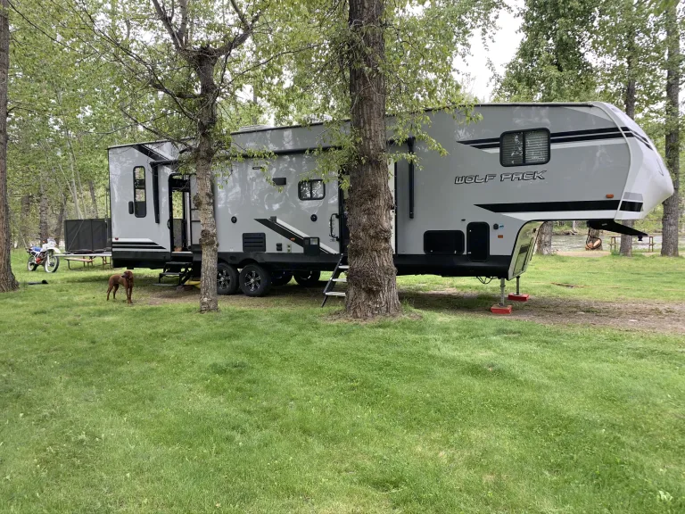 The Rig is a 2019 wolf pack 38ft toy hauler. It has an on board 5500 Cummins gas generator that is connected to a 30 gallon fuel station that can be used to fill atv’s ect. Over sized battery bank 280 amp hrs of battery power to ensure propane Heating all night long. 60 gallon water tank for ample showers. This rig is very comfortable for boondocking. There are two TVs and has high 12’ ceilings. One slide out for couch area, a 13’ garage with a gate that doubles as the deck + ramp. The dinnet and two beds drop down in the garage area. Kitchen (stove ,refrigerator , microwave, fireplace) are in the center section. The bath is upstairs separated from the master bedroom.What's included*must bring own bedding and bath towels