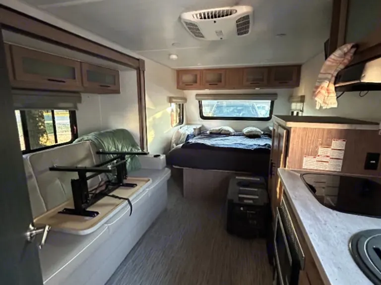 Welcome to the Flathead Valley, Enjoy a camping experience where you can be in the outdoors with the comfort of a travel trailer. Our camper and comfy and compact making every inch of space useful. You will have a queen bed, a twin bed with all blankets and pillows included. You will have access to a bathroom with a sink, toilet, shower (with hot water), and towels. The kitchen is big enough to prepare a meal and includes a sink, fridge, and toaster oven. We understand the importance of bringing the Whole family, so dogs are welcome with additional deposit. We are excited to help host your next adventure!Disclosure: This is not a brand new camper, and has its quirks. If you are looking for the four seasons, this is not it. This is a house on wheels, things come loose. The generator is not included, if you want to power the AC and the microwave you will need power. What's included• Smart TV.
