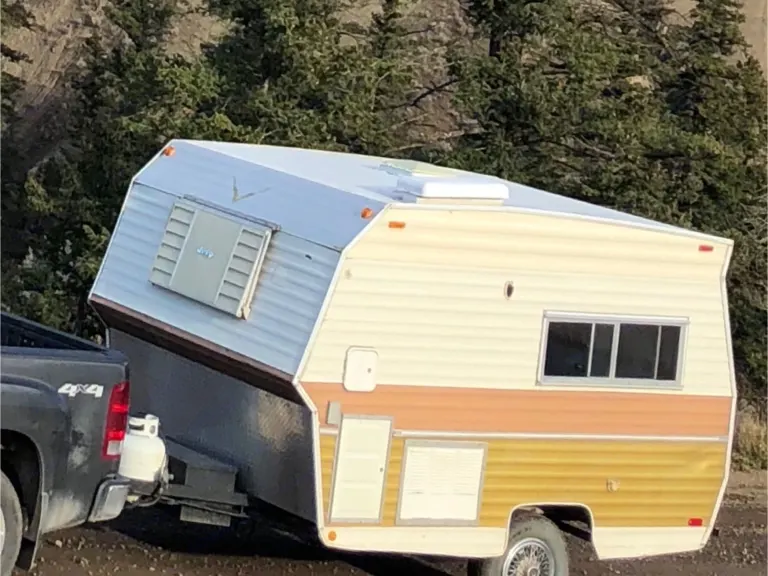 Completely refurbished 1974 Vanguard travel trailer. No water damage or mold. No smoking, clean. Queen sized fold-down table bed and a 6 cube 3-way fridge. Propane heater. trailer breaks. 12 foot.There is no bathroom, 110v with extension cord. So basically this is a comfortable tent on wheels. The axle is flipped so you can take it into most areas.