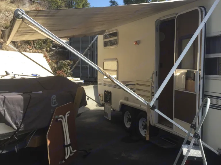Clean trailer with a lot of extras like games, fire pit, lighting, and spare single tent