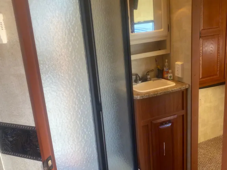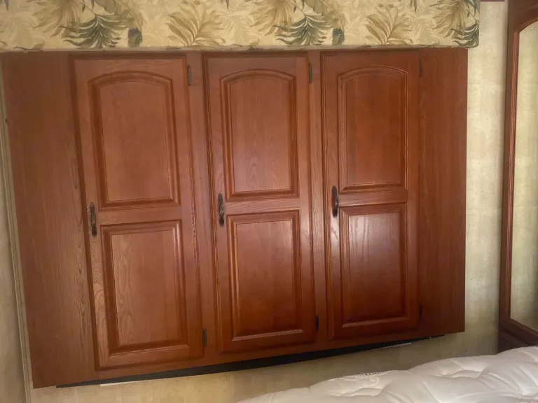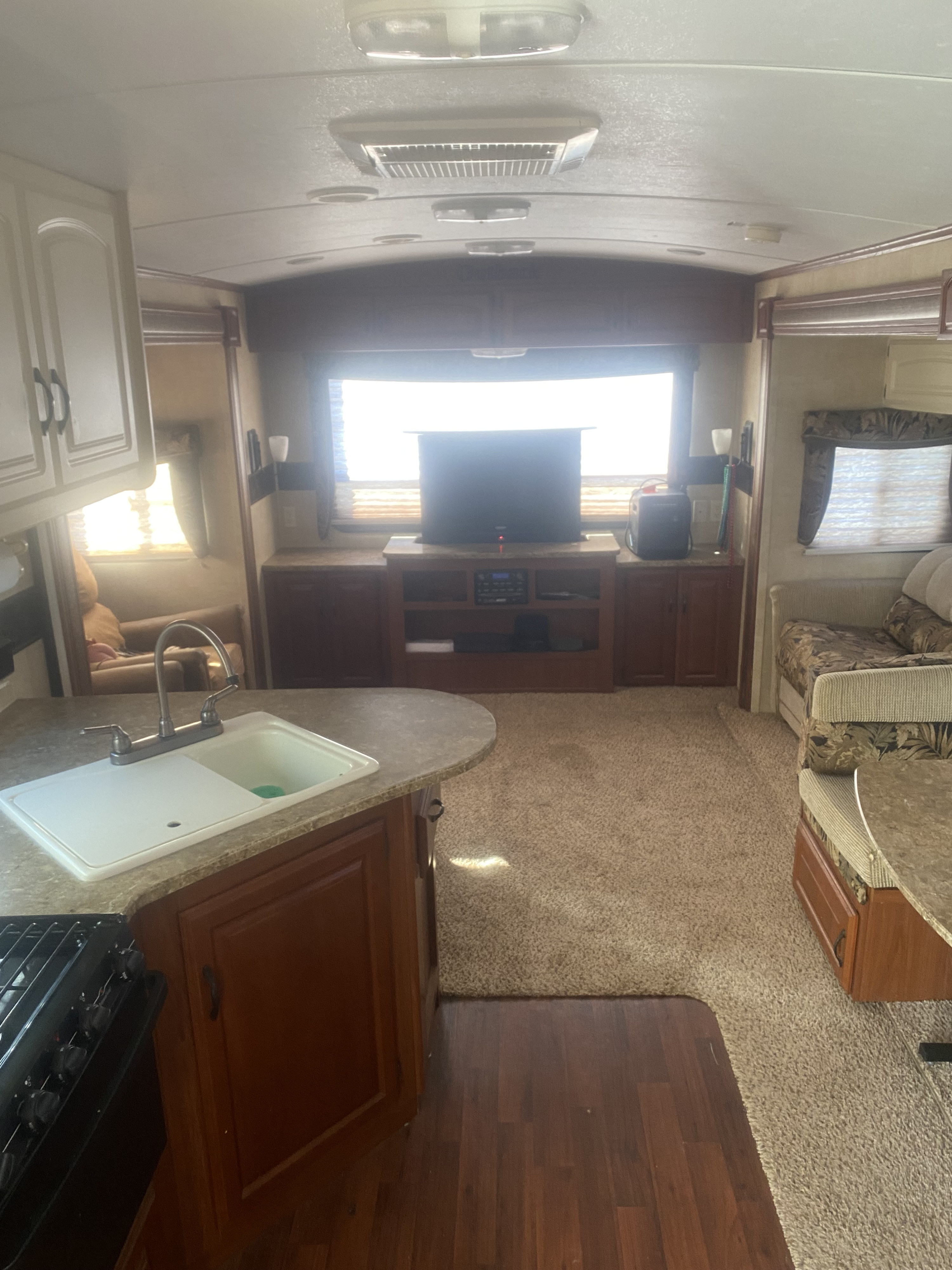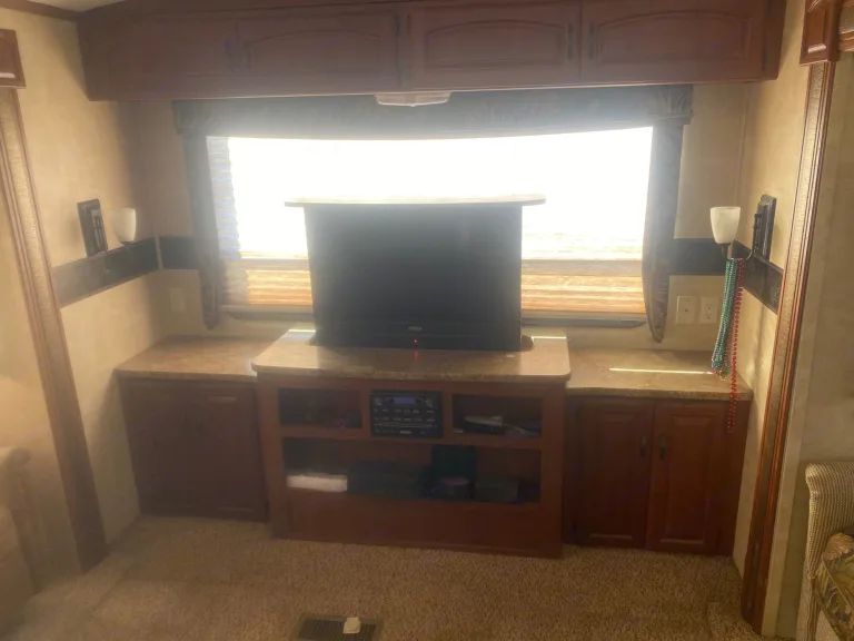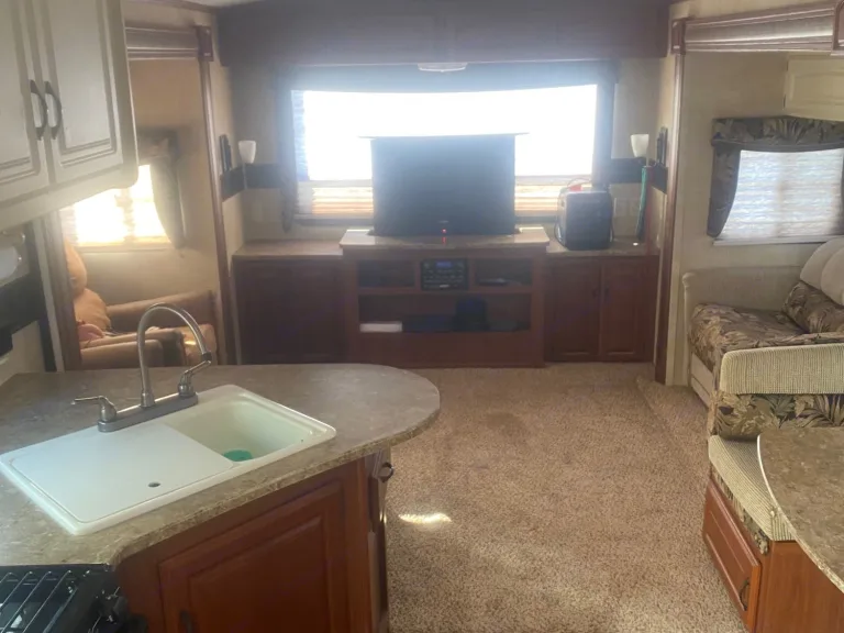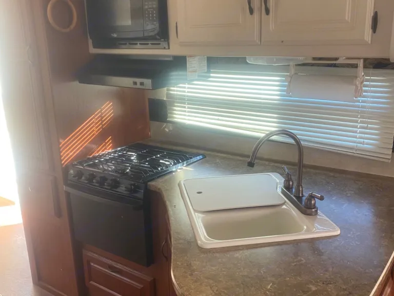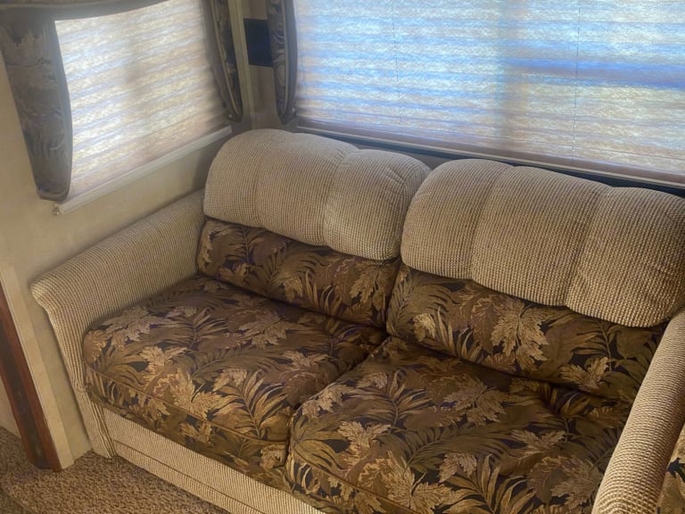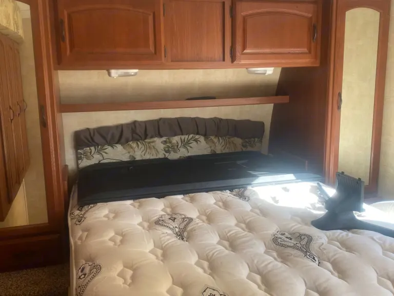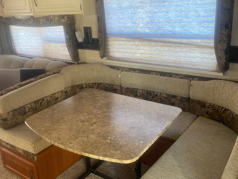 This 36 ft camper has 3 slide-out. 1 small slide-out closet in master bed. 2 large slides in in main area making it very open. The refrigerator is after market and much bigger than most camper fridges. Everything works in the kitchen. Queen size bed in master bedroom. The kitchen table turns into a bed and also the couch folds out to a bed with an air mattress on it. There is 2 comfy rocking chairs. If you want a nice relaxing weekend away our camper is perfect!What's includedEverything is included, sheets, blankets, kitchen supplies, crock pot, case of water, toilet paper and paper towels