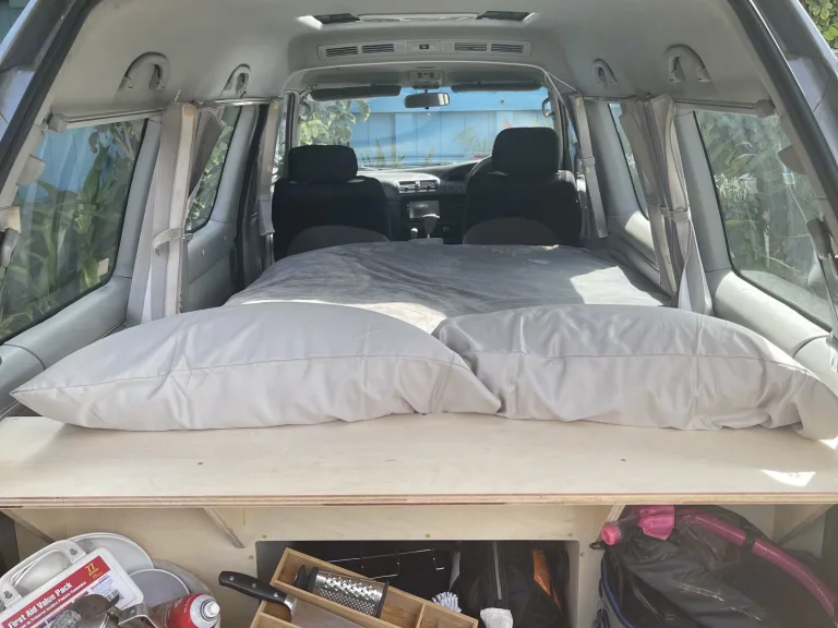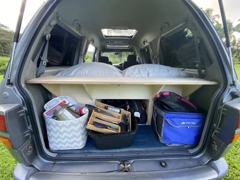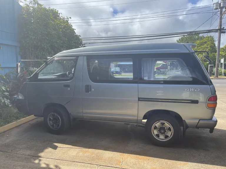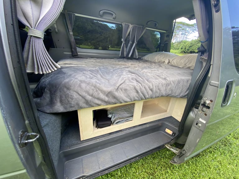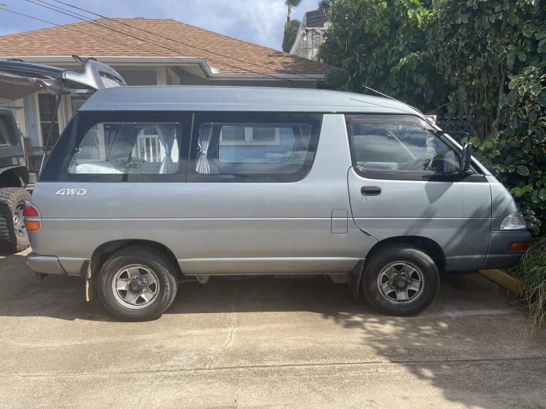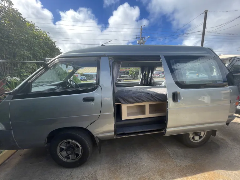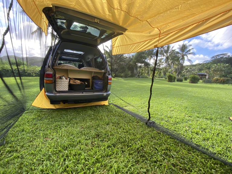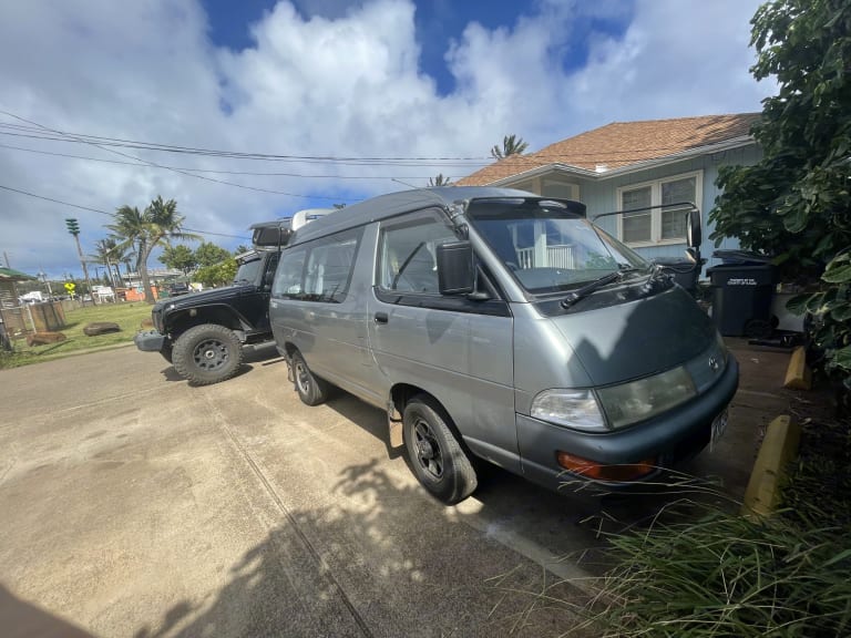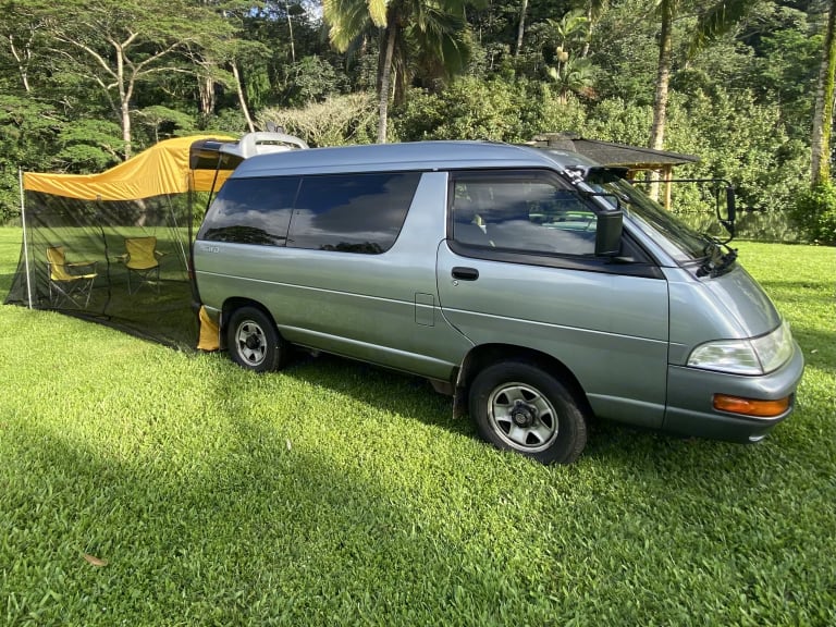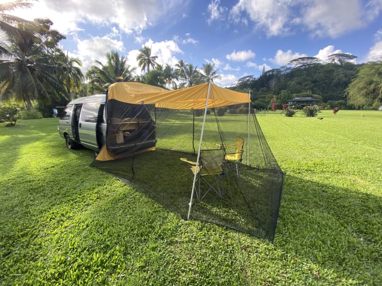 Low mileage Japanese Domestic Market classic Toyota Hiace Van converted to styling camper. Memory foam full mattress with luxury bedding. Camping supplies include camp stove with all cookware, plates, cups, utensils, coffee maker etc. Screened in lanai out back with camp chairs. Snorkels, fins, masks. Extra tent provided as well.