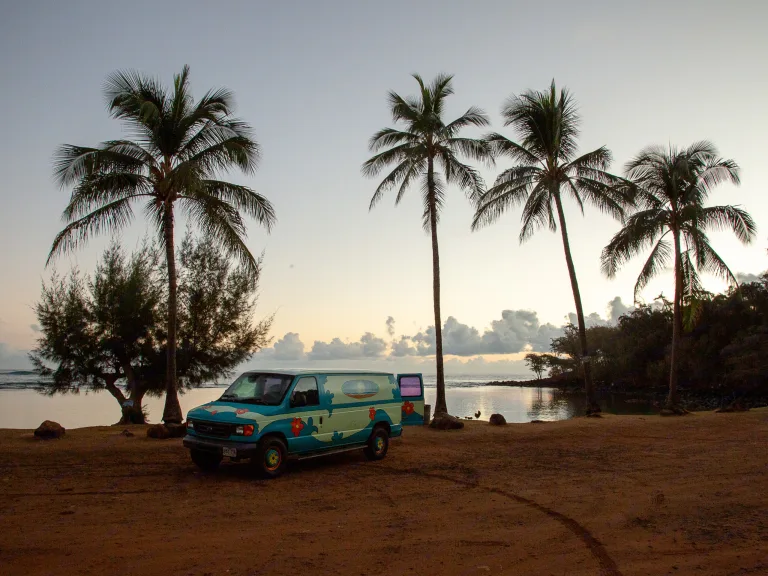 People from all backgrounds are welcome in The Mystery Machine!!What's includedHomeward Found comes with mattress, linens, blankets, two pillows, tent, tarp, sleeping mats and most camping equipment you may need. There is also backgammon, chess, and cards, regular and Uno. The van also comes with two camping stoves, gas, and all the cutlery and assorted dishes. Also included; beach chairs, two little tables and a small first aid kit.RecommendationsExplore this magnificent island. Ask me. Everybody's idea of a fun time is unique. I have lived on Kauai for 35 years and I enjoy pointing my guests in the right direction. From sky diving to sitting in a hammock on the beach, just ask and if I don't know, I'll find out! Other things to noteTravel Restricted Areas: Driving on unpaved, dirt roads and ‘off road’ areas is not allowed. Renter is liable for all damages to vehicle, tires, towing charges and other expenses as a result of a breakdown or damage caused associated with operating in these areas.