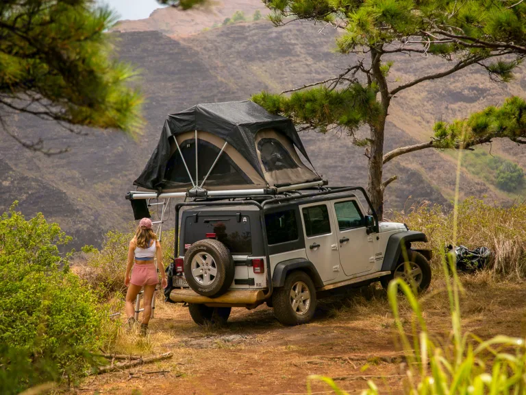 Step onto the custom mahogany of the 4x4 Rig, admired by island locals and ready to empower you for a journey of adventure, luxury, and sustainability. We invested in all high quality equipment that is good for the mind, body, spirit, and our little island. This rig is prepped for experienced overland travelers and designed for anyone to operate with simplicity. We added rear custom cabinetry with reclaimed cedar to organize camping gadgets and provide extra space for your food and belongings.We believe in preserving nature, so we provide everything from luxury organic bamboo sheets and pillows to biodegradable wipes and paper towels. It is our responsibility to do our part in taking care of our planet.Ground tent set up can be included for guest with 3 or more parties.More Features: