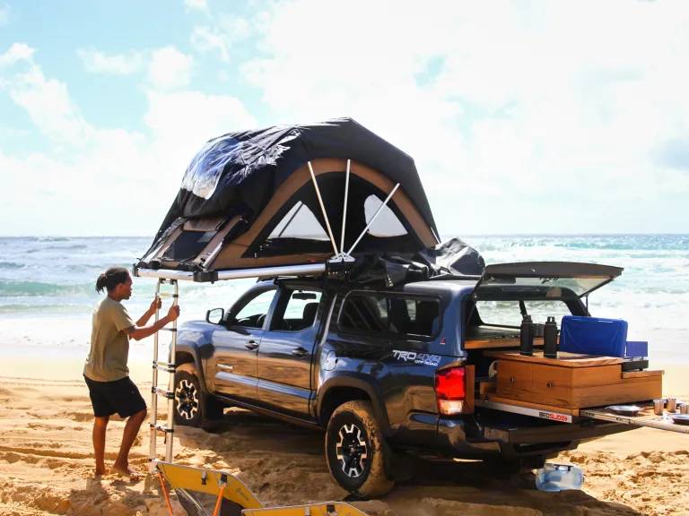 Custom Tacoma with all the bells and whistles so that you can enjoy a tailored luxury experience that has everything you need for comfort and relaxation.We used locally harvested Monkey Pod to build spacious countertop space and installed cedarwood upper storage to douse you in fragrance. Everything in this rig is thought out and provided for epic experiences.More Features: