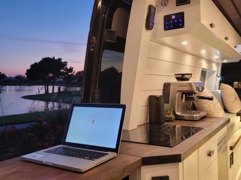 37 gallons of fresh water with hot water heater / 15 gallons of grey water / dump grey water from inside of van with touch of button.Separate shower room, sink, lots of storages, closet, portable toilet, etcWhat's includedKitchenwareRecommendationsRoad trip, National Parks, Attractions, Experience vanlife before build your own.Other things to noteTravel with comfort and style. No need to reserve hotel / motel. This luxury custom campervan is way better !!