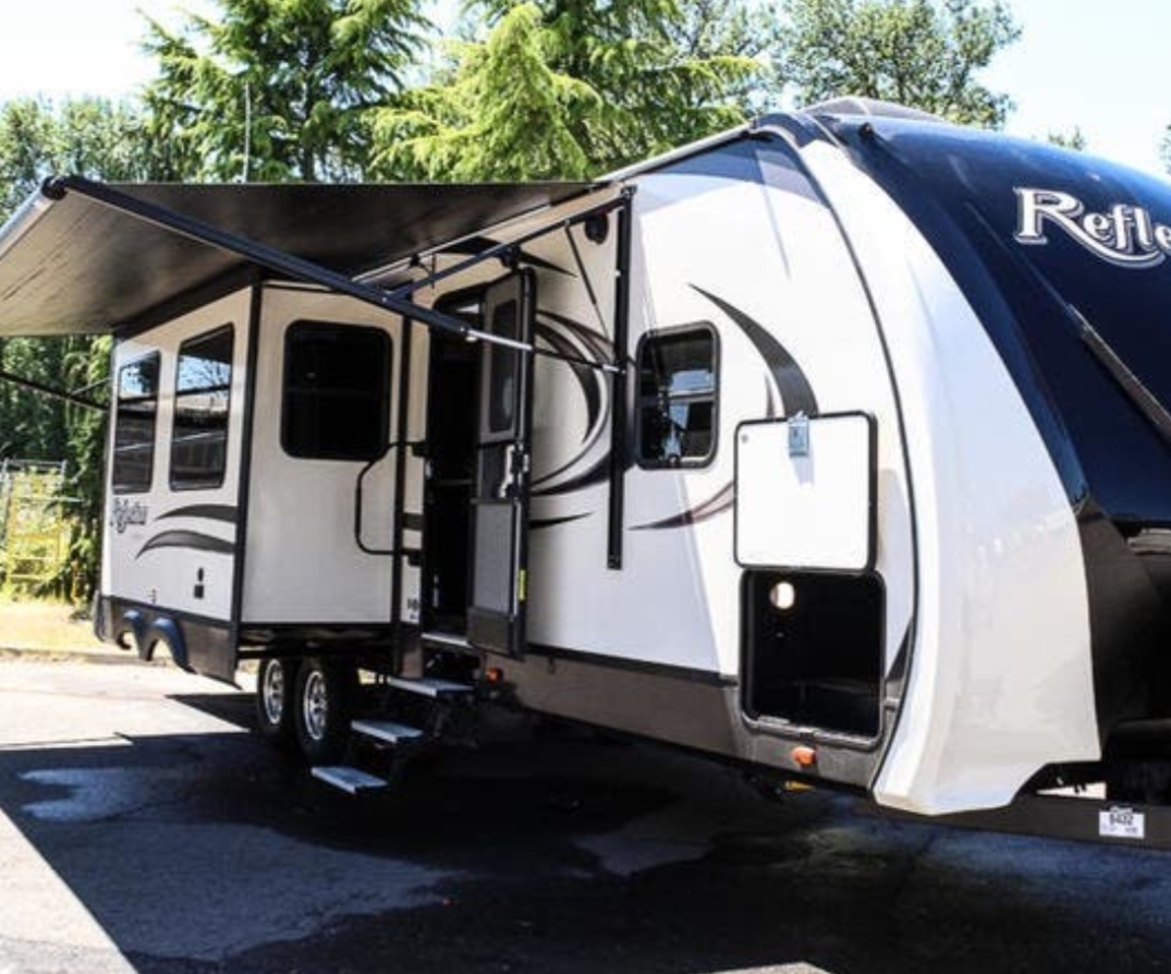 Very clean and new . It's a 312bhts Grand Design Reflection. Meaning it's a bunkhouse. 1 bedroom with a queen, and 1room with a bunk bed and a sofa which turns into a bed. Bunk room sleeps 4. Living room has 2 massage/ recliners and dining room table turns into an extra sofa.