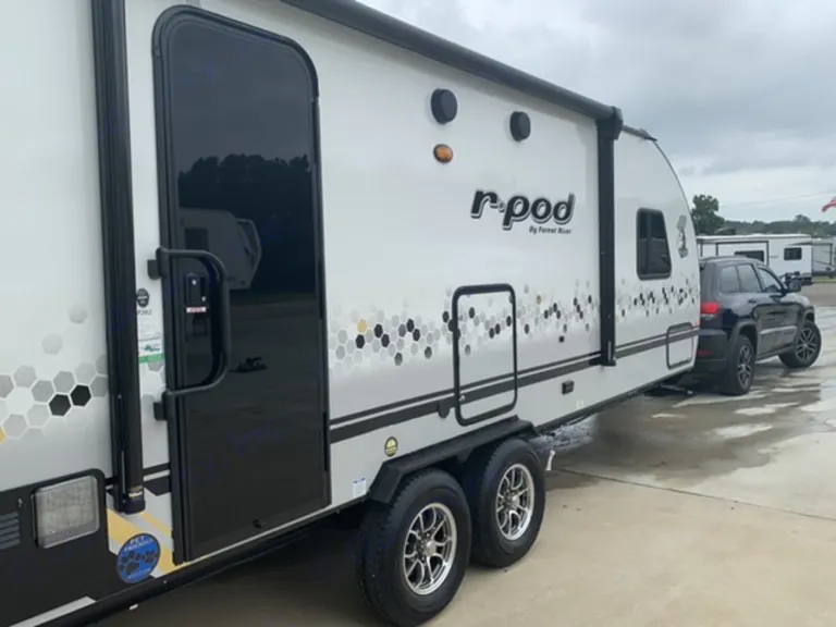 Rent our 2021 R-Pod, it’s the new 25’ model, the 202 - that we’ve dubbed the “Escape-POD”! It's an ultra-light that can be towed by light duty pickups. It sports a separate living room/kitchen space from a private bedroom...separated by a jack and Jill style pass through bathroom with sliding pocket doors.