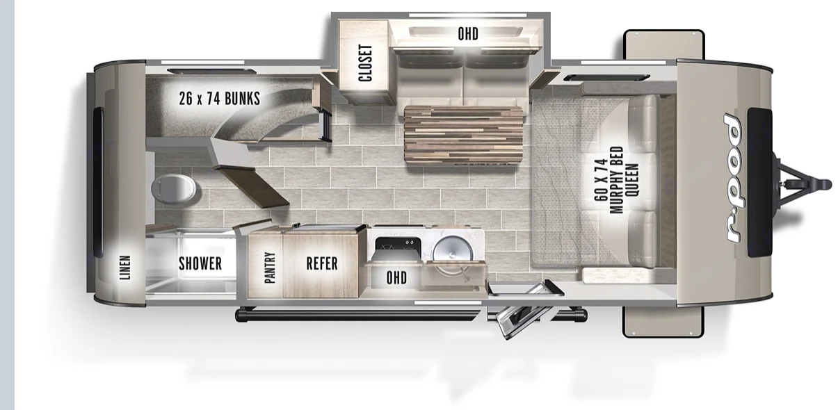 Our rig is a 2021 Forest River 193 with a murphy queen bed, 2 bunks each with their own window. Large fridge, full size shower, convection/microwave oven, and flat screen TV. It's great for families of 4-5 with kids big and small.What's includedComes with camping chairs, disposable forks & knives, cookware, utensils, coffee machine, DVD player, radio, bluetooth speakers indoor and out, and all the RV gear for hookups. Delivery and pickup within 100 mile radius available upon request. RecommendationsGreat for State parks, lakes, fishing trips, beach, countryside getaways.Other things to noteNo Tailgating, No Festivals. Extra cleaning fee for costal beach trips (for the sand).