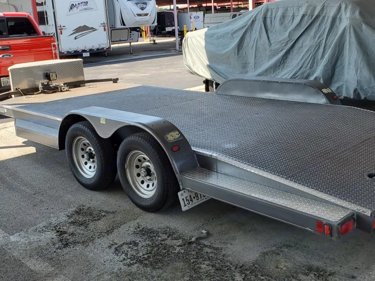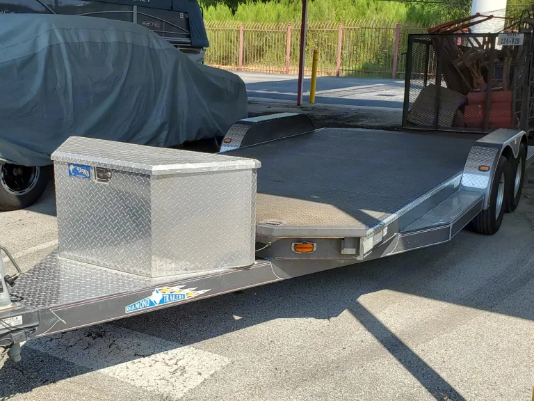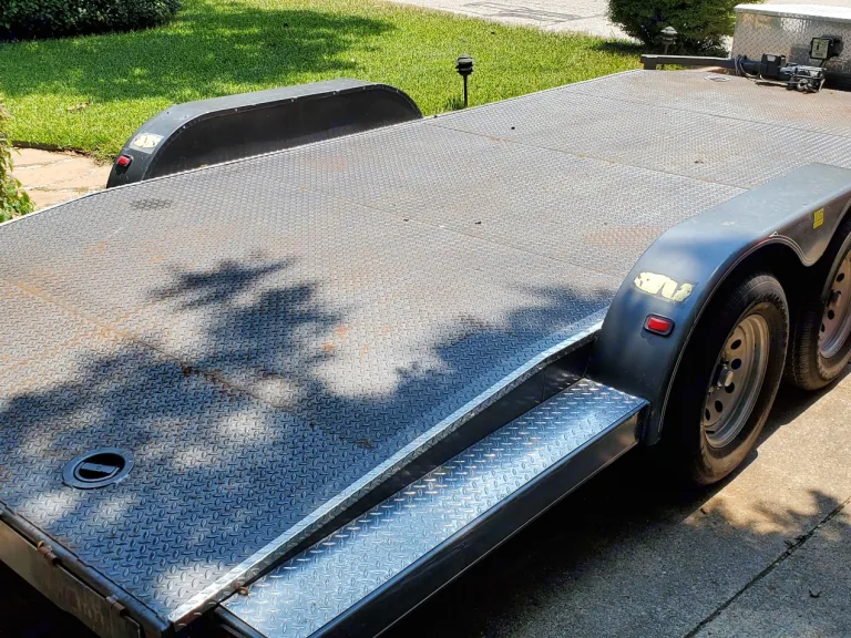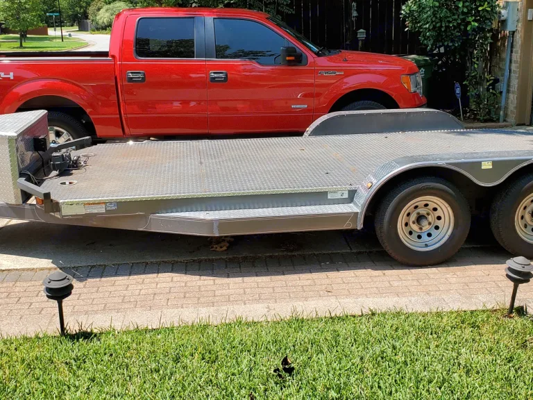 This is an 18 foot Diamond Car Trailer. It has a diamond plate steel floor. It has built in ramps and a dovetailed back to decrease the entry angle. The rental will include a two inch ball and receiver hitch stinger, 4 tie down straps and two axle straps. There is a winch but it is inoperable at this time. This is a car hauler. No tractors or heavy equipment allowed only cars and light trucks. Nothing that has to be pushed on with skids or drug on allowed. No rocks or bricks or anything like that. It's a car trailer. I'm trying to keep the trailer in good shape so when you put your prized possession on it you can be proud of it. I move my truck on it and I want it to look nice too. The trailer is in Keller but I live in Grapevine so you can pick it up where ever works best for you. For an additional fee I can transport for you as well. I'd prefer you drive on and drive off the trailer but I can do the hauling. If it's long distance we can talk about it and come to an agreement.
