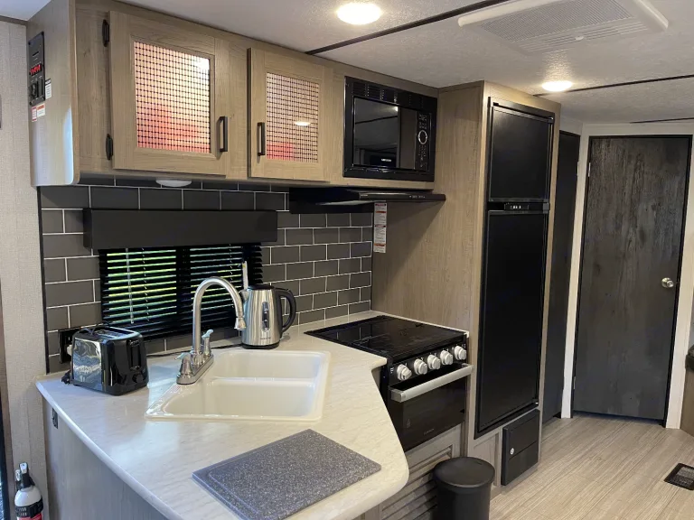 We like to think of our trailers like rolling motels that’s why we Don’t charge extra for providing you with a clean trailer or cleaning the wastes tanks or refilling propane tanks,is all included .our 30 foot hideout is packed so many amenities a deluxe Queen size mattress a laundry chute for yesterday’s laundry 40”4K high definition television ,DVD player AM/FM stereo , Multi colored warm and romantic fireplace. Dual source hot water tank ,three burner stove with oven ,large refrigerator ,sofa that folds into a bed ,dinette set that folds into a bed two bunk beds five beds in total