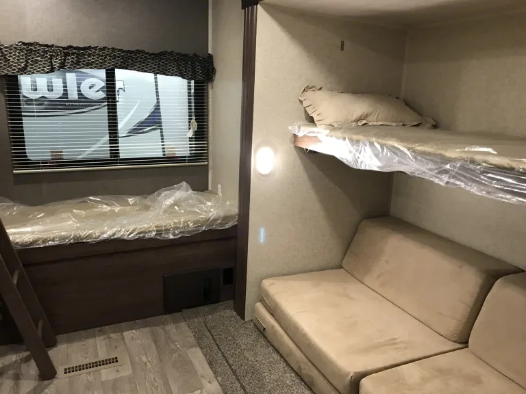 Gorgeous trailer that is very spacious and easily fits larger families. Sleeps 10. We got it to use at our lake house when we have large groups of people. Have used it very sparingly and it in almost new condition. We take great pride in it and keep it sparkling clean.What's includedComes with a few pots and pans, silverware, disposable plates, cups and small vacuum in the back room.