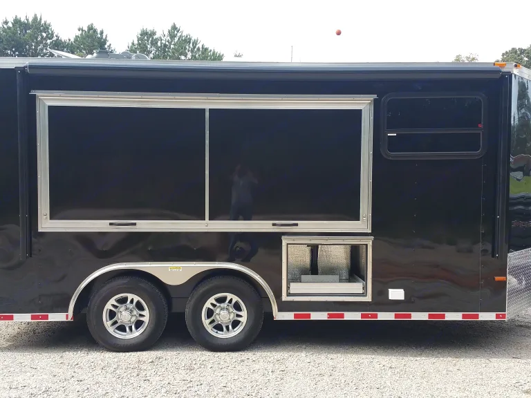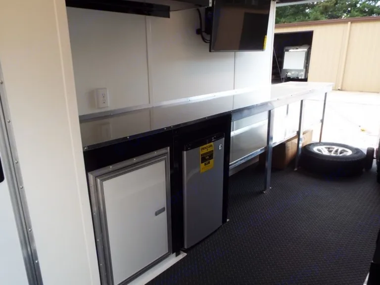 This GameDay Hospitality Suite by Ultimate Tailgating is the perfect Tailgating trailer for hospitality events. It features an interior serving area for catering, 4 Hdtvs, electric awning and much more.•8.5'x22' Tailgating Trailer