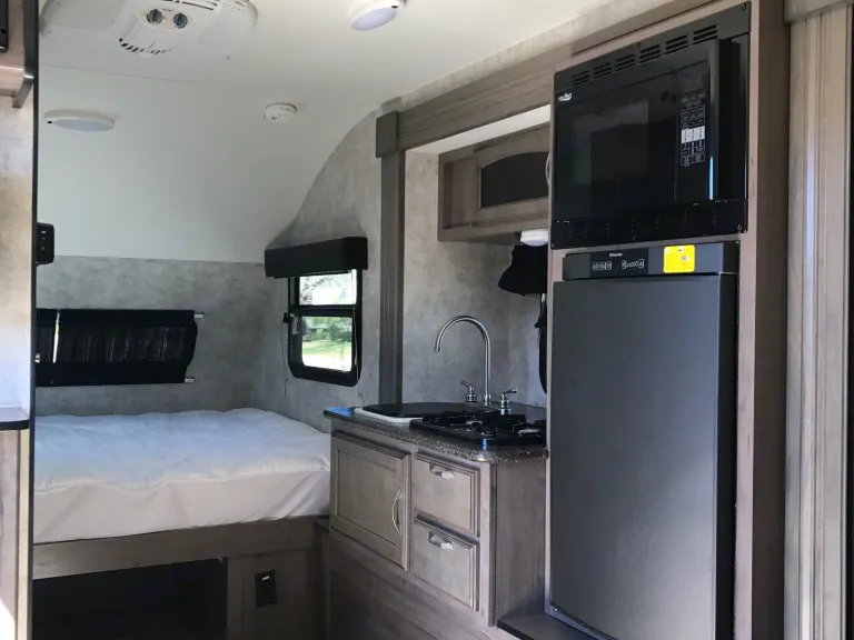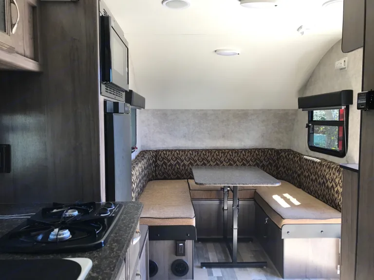 Thanks for viewing our 2016 Winnie Drop. This unit is our personal family favorite! Easily goes anywhere and easy to clean. No muss no fuss. Sleeps 4 comfortably on the Queen bed and the u-dinette conversion. Enjoy all of the amenities of the larger units, such as central heat and air, indoor/outdoor radio/cd, kitchen, etc. Surprisingly roomy thanks to the large slide-out. Cute as a button!!Free delivery for 3+ night reservations to the following Kernville Campgrounds: Rivernook, KRS Camp James, and Frandy. $25 delivery to Mountain & River Adventures. If you would like delivery to an out-of-area location, please contact us to discuss pricing, or include this info in your quote/reservation request. We are unable to deliver to any Forestry Campgrounds.All units come with a 9x12 outdoor area mat. Be sure to check any add-on's that you might need, such as linens or additional outdoor living items to make your trip more enjoyable.What's Included