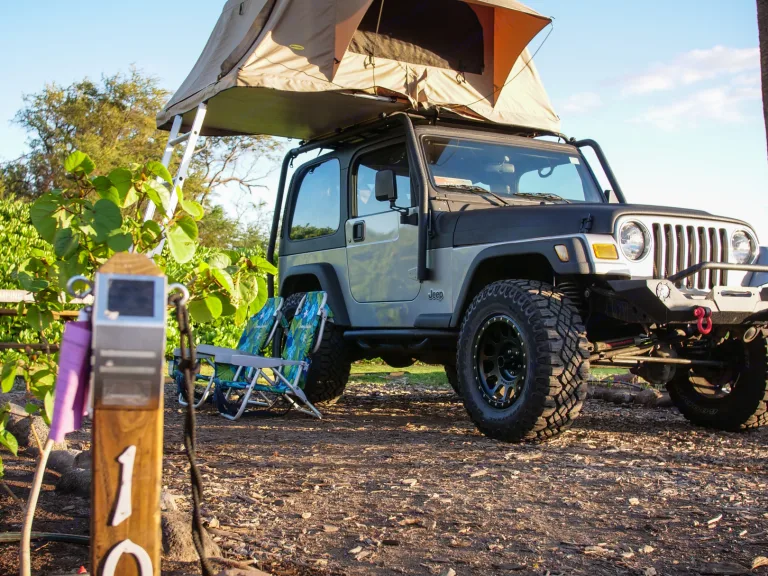 2000 Jeep Wrangler with a Roof Top Tent! Our camper comes with all the amenities! We have the Jeep stocked with clean linens, Pillows, LED lanterns, beach towels, Tommy Bahama beach chairs, Coleman propane stove and gas, camping cookware (pots/pans), cooking/mess kit utensils and a camp table! Book your adventure today!!