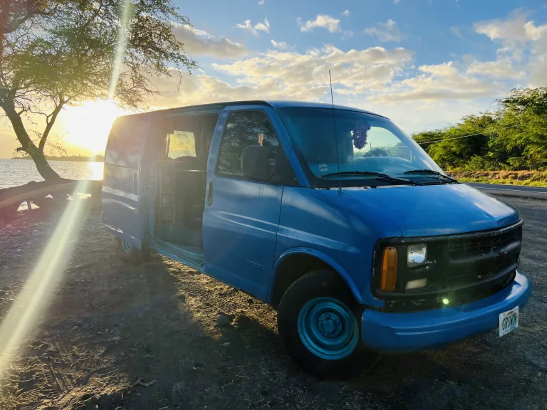 Explore, Sleep, Repeat! Enjoy the best of Maui Life in the Aloha Vibes Van! This fully converted glamping cargo van is well thought out with added touches, fun decor and everything you need to ensure a great stay in paradise. She's an oldie but a goodie :) Explore, Sleep, Repeat!Aloha Vibes features a memory foam full size bed (sleeps 2 people max.) with bed linens, a plush blanket and two pillows; solar power to charge your devices, bluetooth speaker, fan, under the bed storage, fridge, sink, camping stove, beach and shower towels, dishes and cookware... everything you need for a functional and relaxing island camping experience.To help make your trip more enjoyable we have added magnetic screening in the doorways help keep out the bugs, privacy curtains for a peaceful night, a steering wheel lock, blue tooth speaker, coffee maker & mugs, two chairs to use at the beach or camp ground, a lantern, two hammocks, two sets of snorkel gear, an folding table, coolers with ice packs, lantern, first aid kit, jumper cables, a dry food bin, paper towel, TP, soap, and a filled 5 gallon tank of drinkable water attached to the sink. Please see the photos and list below for all included items. Just bring your clothes, sunscreen and food.The van is parked in Kihei, a 20 min. drive from OGG airport. I offer a pick up and drop off service to and from the airport ($30 each ride, $60 total pick up & drop off) or you can take a taxi or Uber. Pick up is anytime after 2pm and drop off is anytime before 11am. The van will be filled up and ready to go and must be returned on full. It takes regular fuel. Two people MAX and anyone driving must be 25 yrs or older. Proof of drivers license is required.Please Drive Safe & respect the aina (land)... never leave trash behind. Give Aloha, Get Aloha. Aloha Vibes all around! What's includedA list of great camping spots will be given to you once your booked :)What's included:Memory foam top FULL SIZE bed (2 people max)
