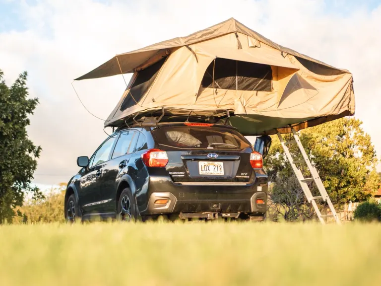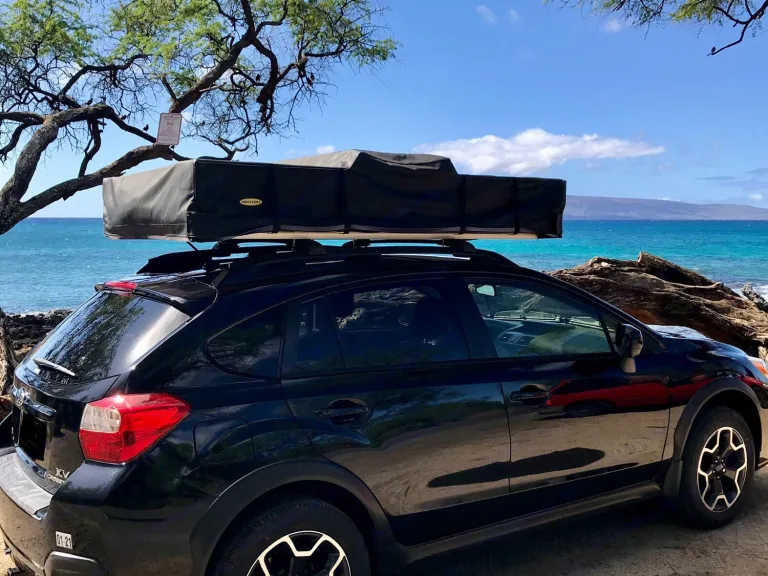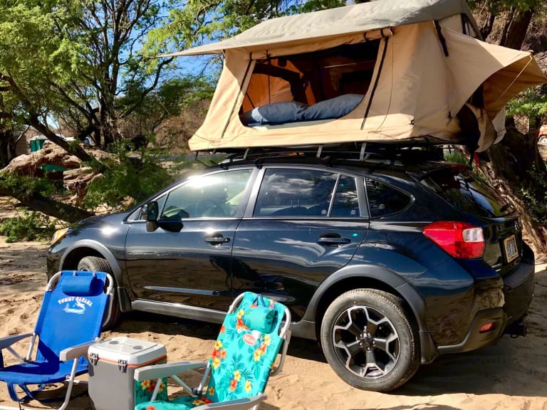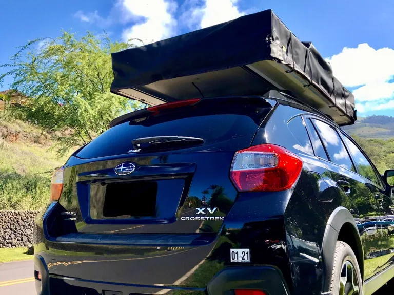 Explore Maui and all that it has to offer in the comfort of a Subaru! Enjoy breathtaking views and secluded beaches in a compact SUV equipped with the Smittybilt Overlander-XL roof top tent with a easy set up system and a wide comfortable aluminum ladder and interior LED light, mosquito net and a shoe bag. A spacious sleeping area (King Size Bed!), complete with a High Density Foam mattress and fresh linen. The XL tent offers an opening that is accessible from the underside, adding extra privacy for camping while entering and exiting, and shelter for those unexpected showers. With a waterproof construction, mesh windows, sunroof to view the stars, this tent will allow you to enjoy all the beauty Maui has to offer and explore the hidden wonders of Maui in this versatile and compact AWD Crosstrek!We offer pickup/drop off option at another location. Uber or Lyft is $20-$30 instead of the fee for airport delivery plus parking.Subaru is equipped with extra foam mattress and linens, pillows (2), beach chairs (2), beach umbrella, cooler (pictured), collapsible table, butane camper stove, one pot and pan, cooking utensils, dishware, cleaning supplies, LED lantern, and flashlight.Tent instructions can be found on: