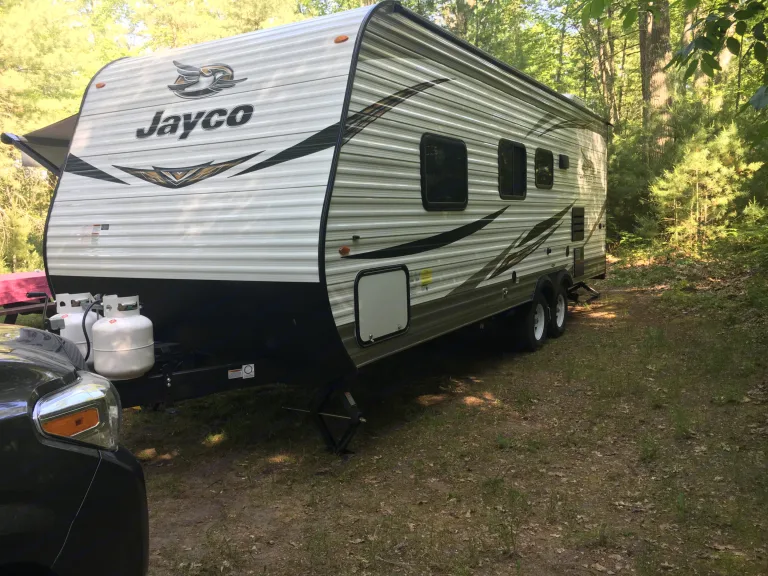 Comes with 18ft outdoor rug, hook -ups for black water/ water and elec.Fresh water 42 gals