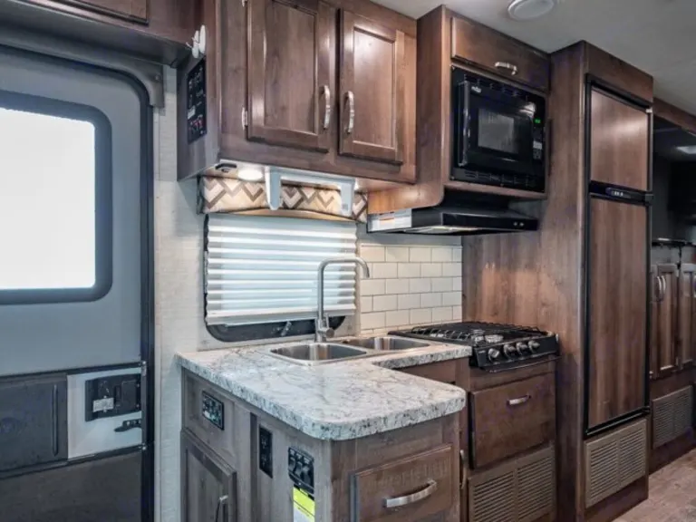 This RV is the perfect size for most any RV trip. Under 30 feet and easy to drive. Plenty of space with a living room slide out. Has all the amenities that you will need. RV is loaded with every item that you can think of that you will need for your trip. Has an indoor and outdoor kitchen. Indoor and outdoor refrigerators. Rental includes outdoor tables, chairs, rug and bike rack if requested. Full size sofa with 50" TV hooked up to Dish satellite so you can watch all your favorite channels anywhere you go. What's includedKitchen: Plates, Cups, eating utensils, cooking/grilling utensils, pots, pans, skillet