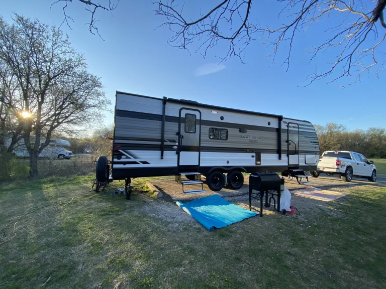 Oven is perfectly sized for frozen pizza for those nights you really don’t want to cook, along with a residential sized microwave. Fridge/freezer runs on the solar bank so no need to pack a cooler.Rental is a non-smoking unit.What's includedBasic hookup materials are included. This does not include potable water tank filling.Pillows, decor, and linens are not. Other things to noteDelivery and Set up can be included at an additional fee.
