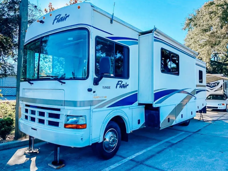 Our 2001 Fleetwood Flair 31A Class A will help your family make memories that will last a lifetime. If you are going for just a weekend, a week or longer, this RV is ready to go.Here are the specifics:Double slideDual A/C’s that will keep it like an ice chestSuburban heat with floor ductingUpgraded luxury flooring throughoutCouch with pull out bedSleeps 6 (with room for extra sleeping accommodations if needed)Massive amounts of storage5K lb tow hitch with brake controllerTwo flat screen TVsDVD/Blue Ray PlayerOutdoor showerOnan 5500 generatorBackup & Side View CamerasLeveling JacksPlease contact us for more questions. Thank you for looking!What's includedFresh Linens, pillows, plates, firewood, mosquito repellant, and more!