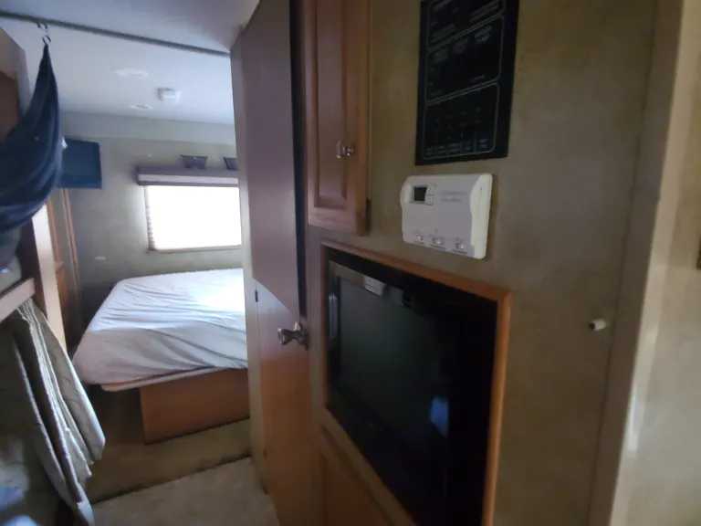 Through the hall you'll find 2 bunk beds for the kids with their own TV and windows for viewing.