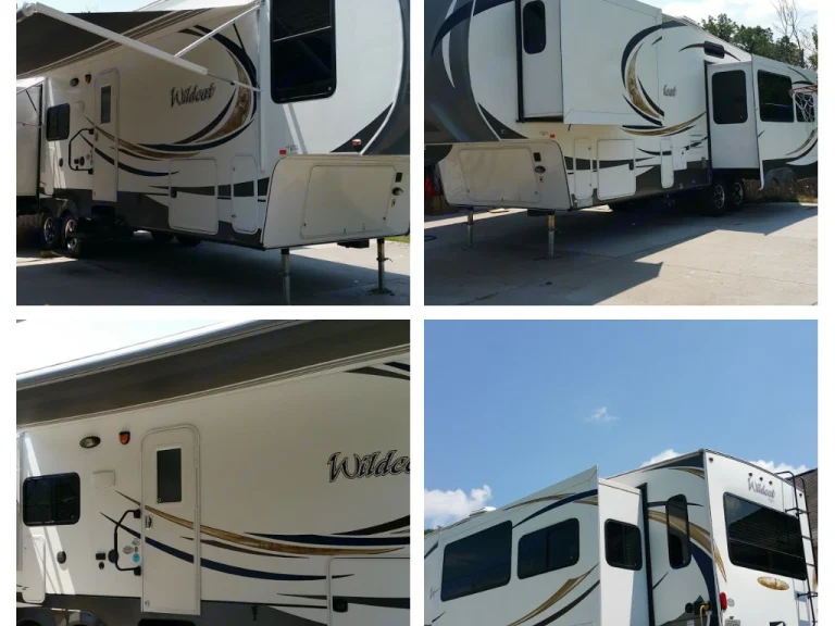 This 5th wheel has everything you need for a great trip. 3 slides offering an expanding living area and dining area, as well as enlarging the master bed room. Walk in shower and an exterior shower.