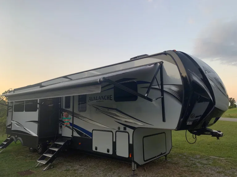 Big Bear Retreat is a 2019 Keystone Avalanche Fifth Wheel. We boast with space and comfort for everyone. Big Bear is equipped to sleep 6 people comfortably. Our kitchen has home standard appliances such as refrigerator, freezer, stove top and microwave. Lots of pantry space. Our rig has a full bath in the Master-suite and a half-bath in the bunkhouse. The living room offers an open concept of spacious high ceilings and a fireplace to enjoy while sitting and sipping your coffee or to help warm you up on a chilly morning. Tons of storage inside and out. Big Bear also has a Washer/Dryer to offer small loads while traveling located in the Master-suite. Outdoor Kitchen has a fridge, double power awnings, outdoor lights and a TV also there is a radio that can play indoors and outdoors for music listening for entertainment. Inside through out the whole RV you will find cabin décor from the beds to the decorations. This RV's rare floorplan is well suited to comfortably host families. We hope you will stay with us!