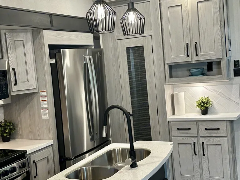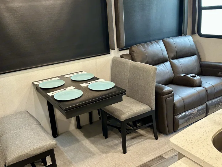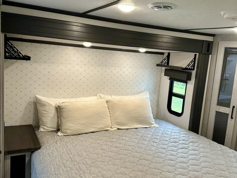 Luxurious camper perfect for a family of four! Features a king size bed, full-size refrigerator, full-size kitchen sink, reclining chairs, and a couch that turns into a sleeper. We also include a full-size air mattress.
