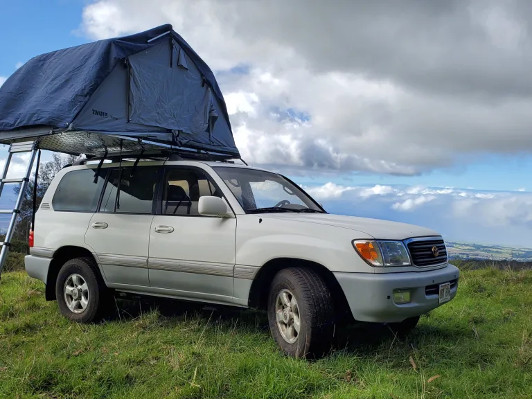 Lifted and locked 1998 toyota landcruiser 100 series gold edition. The Landcruisers are time proven overland rigs with an outstanding reputation for rugged reliability. This well maintained and equipped truck is the perfect platform to explore the island.What's includedEquipped with a tepui kukemon3 ruggedized cartop tent and a vehicle emergency kit. Utilize the Add on menu to build the vehicle the way you want. This keep the cost lower because you only pay for what you want. The base camp kit is highly recommended.RecommendationsThis truck is ready for your island adventures. Whether it be to the jungles of Hana, the beaches, or the summit of Haleakala, this overlander rig can handle it all. Specific recommendations are given based on your interests, the weather, and local events.Other things to noteBase camp Kit includes: