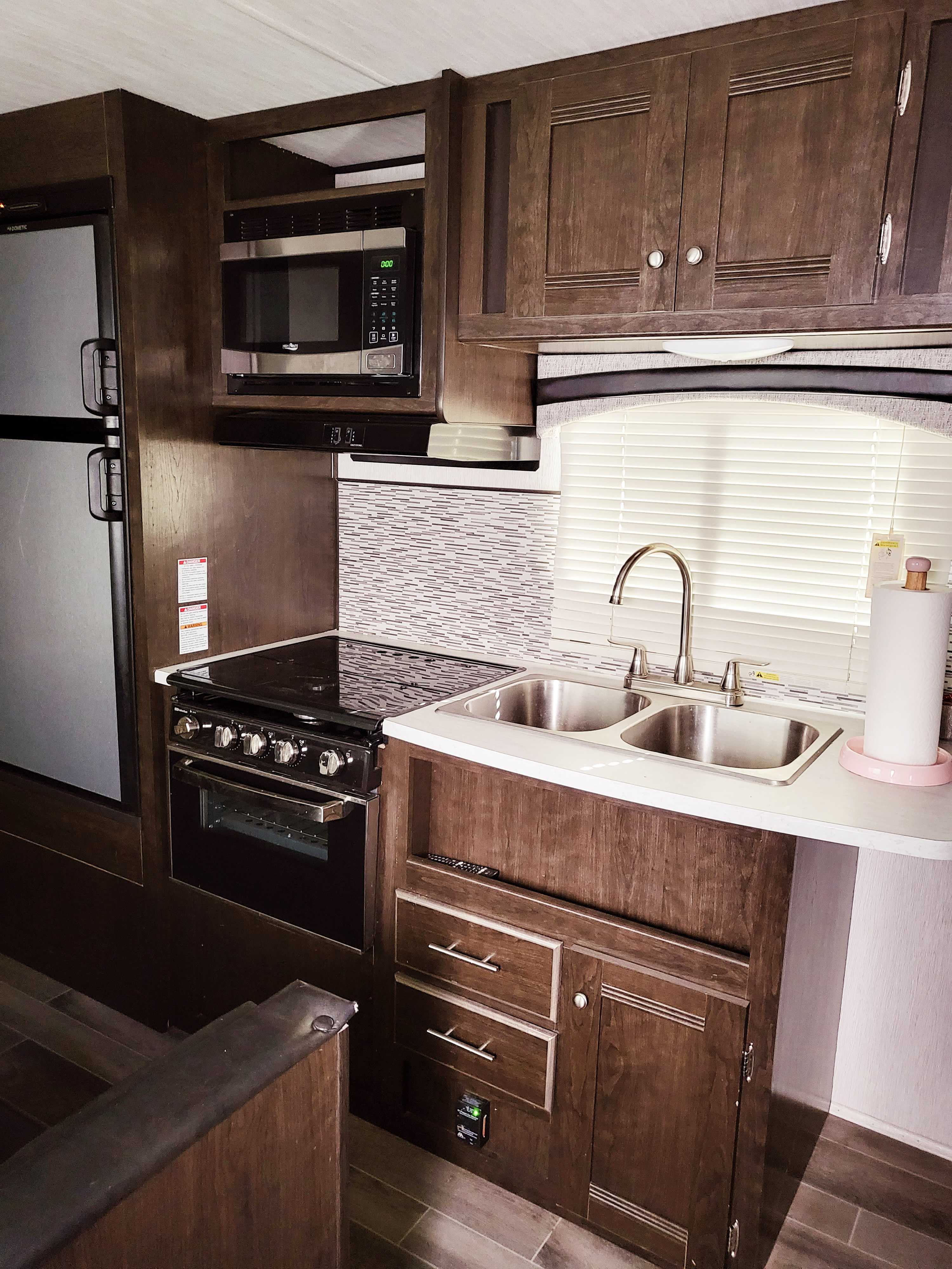 Almost new Trailer have very nice inside. Has bunk beds folding couch, queen bed and a dinette that converts into a bed. It was 4800 dry weight so very easy to pull. Pack your camping stuff and enjoy the stay!
