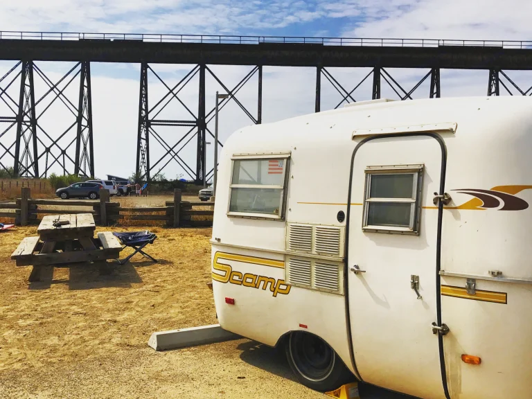 Our Scamp is a white eggshell trailer. 13 ft long and sleeps four. The trailer has a working refrigerator, a kitchen sink and stove. There is plenty of storage and it's easy to tow. This is the best way to camp!
