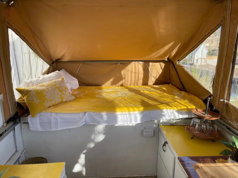 This little guy is full of beautiful surprises Light weigh. We pull it with just two wheel drive. We can bring it to where you want and have everything set up for you. Surprisingly spacious. Lots of storage space.Wake up to the most beautiful views. Relax, unwind, explore.