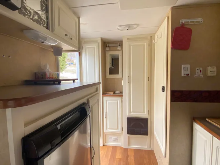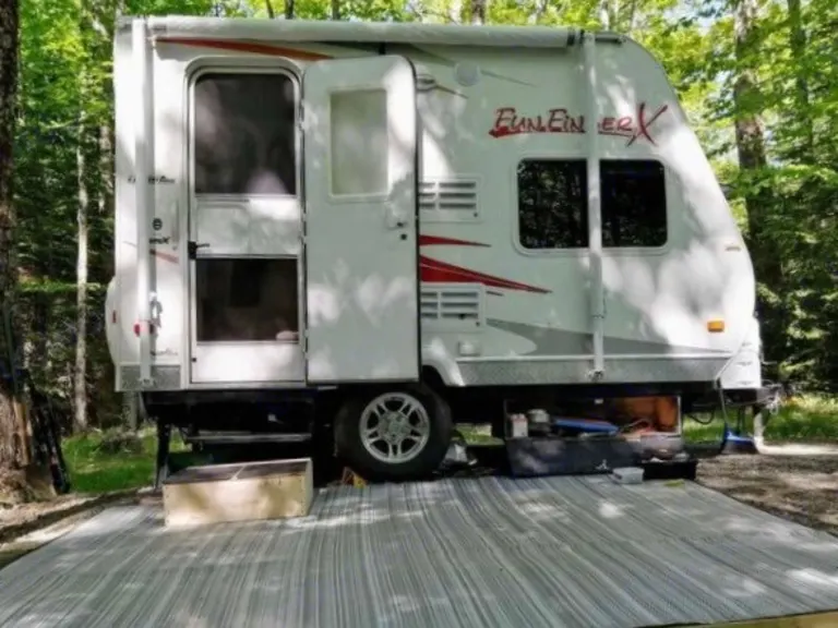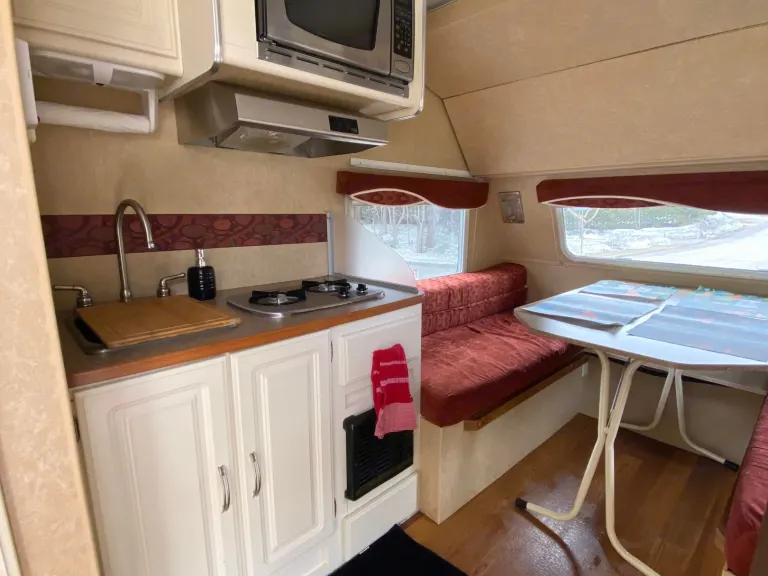 Petite roulotte compacte parfaite pour un VUS pouvant loger jusqu'à trois adultes ou deux adultes et deux enfants.Cuisine complète comprenant un évier, deux ronds, un micro-onde, un réfrigérateur et un congélateur ainsi que tous les accessoires de cuisineToilette, douche intérieure, air climatisé.