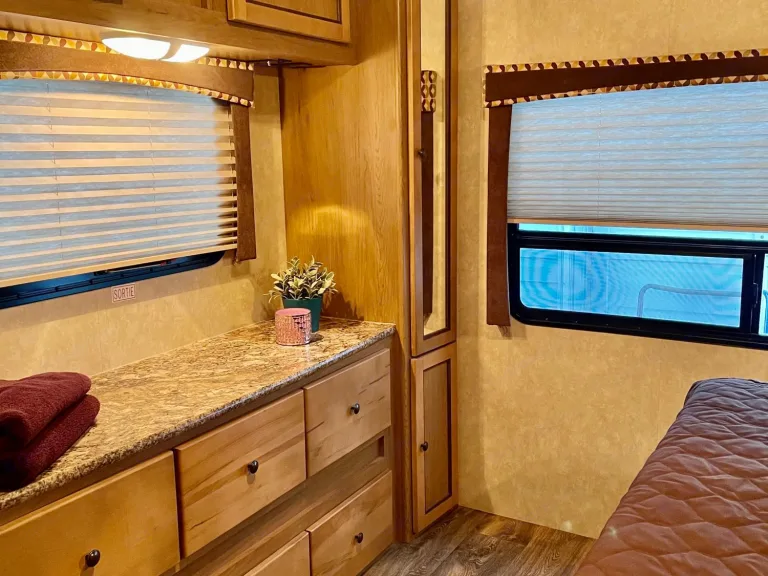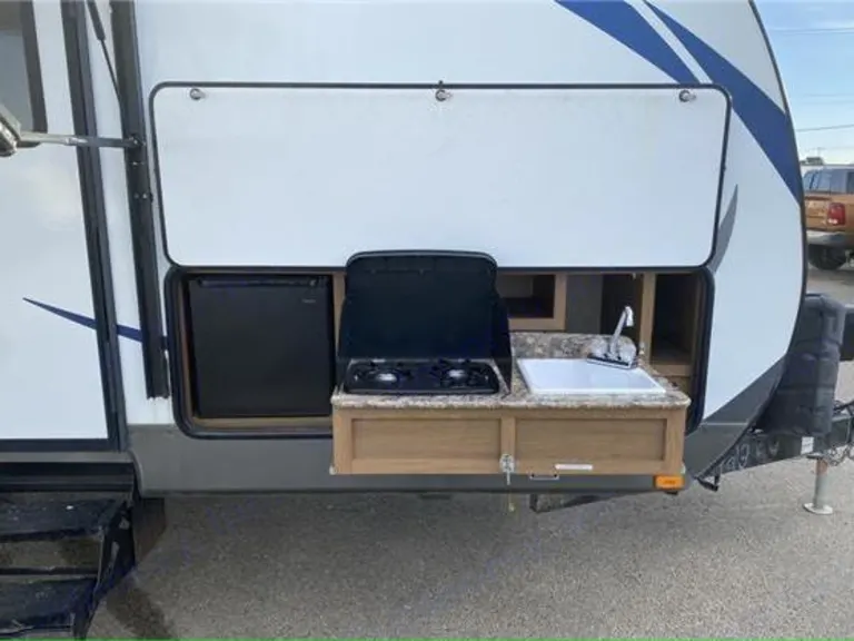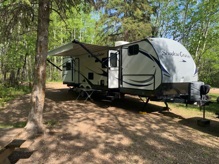 Beautiful inside and out!Key Features:4 bunks in separate roomOutdoor kitchenPower awningBluetooth sound system Indoor and outdoorHD TV in main living roomPower stabilizer jacksPower tongue jackMaster bedroom with fullsize dresser!Fullsize bathroom (with separate door to outside)lots of storageNapoleon Gas BBQ8’x20’ camping matfully equipped for your family get awayDelivery and set up available in the Lac La Biche and surrounding area!Owned by 2 Healthcare workers always thoroughly cleaned and sanitized!Add-ons/Included:Included:
