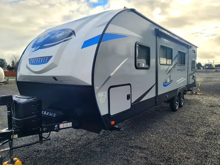 Ready to travel with all the amenities and comforts of homes. Plenty of storage too. Comes with chairs, outdoor barbeque, bug repellant, outdoor shower, two entrances, and all the set up equipment to make it a home away from home.What’s IncludedChairs, BBQ, insect repellant, dishes, pots/pans, towels, paper towels, toilet paper, tow and sway hitch, electrical cords 15, 30, 50 amp , water hoses, waste hoses, and x-chocks.What's includedPillows, bedding for queen bed, camping chairs, water hoses, waste hoses, chocks.Extra blankets and bedding not provided.