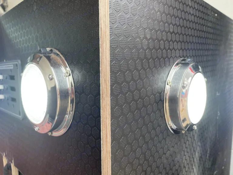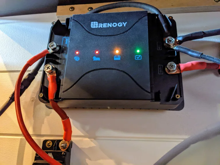 300aH batteries charged from solar, van alternator, and shorepower on renogy dc-dc charger! Go completely off grid with no worries.