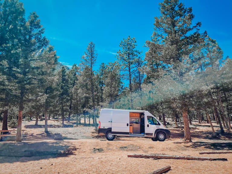 Taking off for a weekend in this 2021 promaster 2500 is the best way to experience the beauty of nature AND a professional campervan conversion.Our philosophy is to keep it simple. We want to give you everything to enjoy an off grid trip wherever you choose to take her-- no silly enormous cleaning fees, tiny mileage limits or paid add-ons that shouldn't be add-ons in the first place! We do not rent this full-time (we accept requests for ~1 week/month then we block it for personal use) so if you still see availability, snag it before it's gone!Note: NEW in 2024 was a third passenger foldaway seat and 12V Isotherm Cruise 130 fridge to replace the cooler box bench shown in older photos. Perfect for a little one's car seat or little one, third passenger, etc. There IS enough room for a pack & play sleep setup in the van! Please inquire if you have questions.Follow us on our journey on Instagram @thewildonevanWhat's included// COMFORT+FUNCTION //