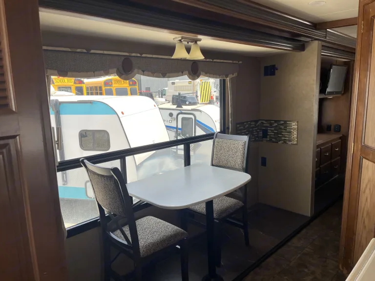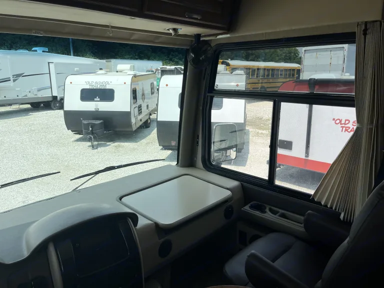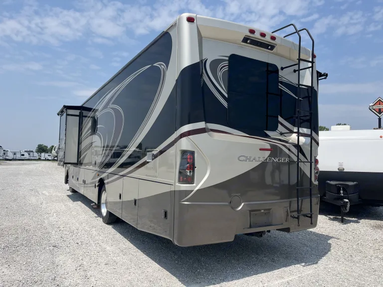 Traveling in this Challenger 37KT class A gas motorhome by Thor Motor Coach will be nothing less than spectacular. Not only will you enjoy comfort when moving from place to place, but when you settle for awhile you will enjoy all the conveniences of home!Step inside and find a front living room beyond the cab area featuring dual opposing slides. The door side slide features a sofa with air bed as well as overhead storage. The opposite side features a slide with an electric fireplace with a remote and a 40" LED TV just above. Pocket doors separate the living space from the kitchen for added convenience when using the room for sleeping space. There is also an optional overhead bunk above the cab area for even more sleeping space for guests.The kitchen area features everything you need to provide meals and snacks for your family. There is a pantry with washer/dryer prep to the left of the entry door. On the opposite side you will find a refrigerator, a three burner range with microwave above, and large kitchen sink with overhead cabinets for storage. There is also a pull-out trash bin and countertop extension for added convenience.A slide out with a free standing round dinette table and corner 26" LED TV will seat four comfortably while eating, playing games, or watching shows. The rest of the slide continues into the bedroom. This slide features closets on both sides of the dresser with a 28" TV above.The rear bedroom features a king size bed with nightstands on either side. The master bath is accessible from within the bedroom or from the dining area. The bath features a 34" x 34" angled shower, a toilet, a sink with overhead cabinet, and linen cabinet too.Back up front there is a coffee table between the two captain's chairs. If outside relaxing is something you enjoy, the 32" LED TV is located beside the entry door.All this and more will make any road trip you find yourself on the most enjoyable!