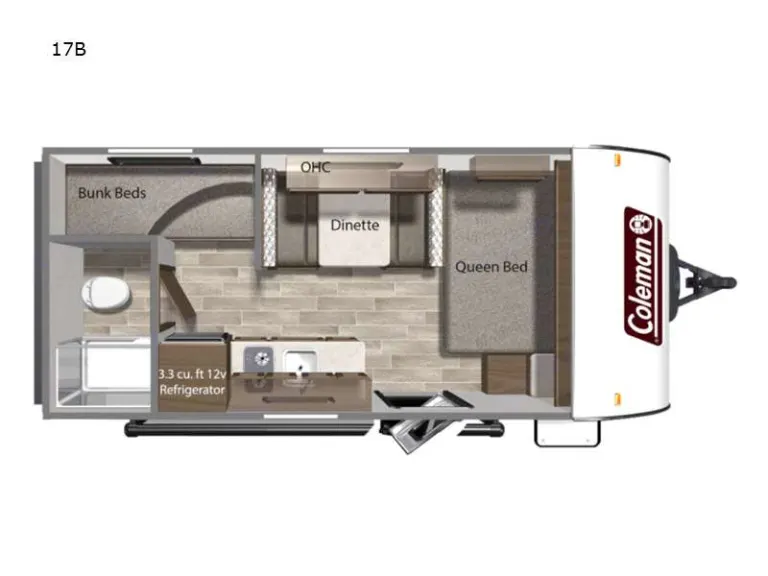 Dutchmen Coleman travel trailer 17B highlights:Bunk Beds