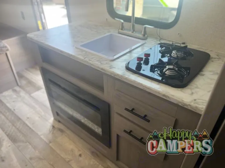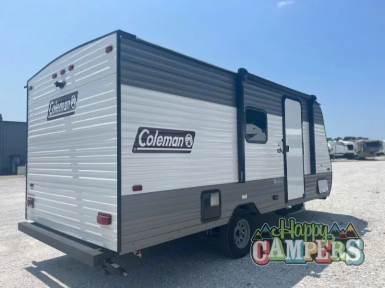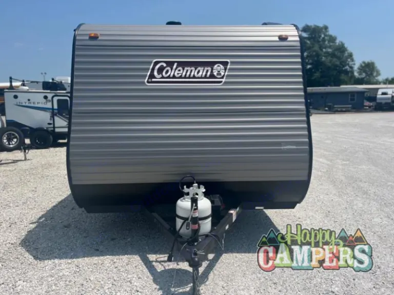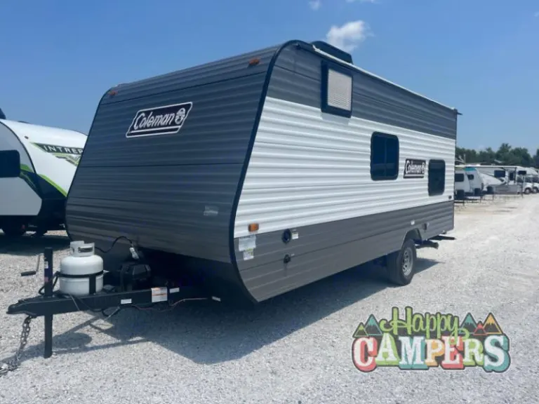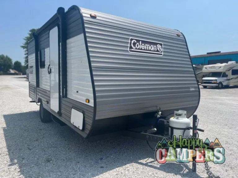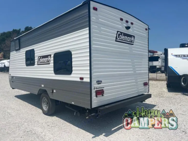 Solid Entry StepAfter making dinner on the two burner cooktop or inside the microwave, you can dine at the booth dinette or outside under the 8' power awning if you brought along your camping chairs. Either way you will be comfortable and the dinette may even sleep one person if needed. After playing outdoors all day, everyone can return to get cleaned up in the private toilet and shower room then fall asleep on the queen bed up front or the bunk beds in the rear. And everyone can wake up the next morning to do it over again.With this Coleman trailer, you will experience Dutchmen quality throughout, plus enjoy a lightweight travel trailer while towing to the campground or RV park. Some of the inside features include glass cabinet doors, a high rise faucet, and trash can storage. The 28" entrance door offers an entry handle to easily make your way up the solid entry step, and other exterior features include radial tires, silver spoke rims, Easy Lube axles and storage.Standard Features17B Package2-Burner Cooktop