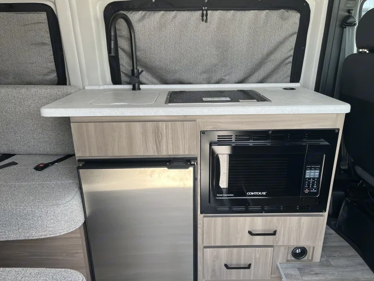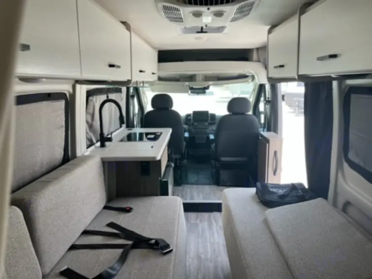 WardrobeThis Thor Motor Coach Twist features a wet bath located all the way to the rear so you have more living space up front. The kitchen is just behind the cockpit swivel chairs, with a single door 12V refrigerator, two burner cooktop, and steel sink. Towards the back are two twin-size beds/expanding sleeper sofa that serve as seating areas during the day, and at night they can be converted to a king-size bed. There's also a removable dining table to enjoy all your meals. The fully enclosed rear wet bath features a shower and power vent. There's also an outdoor shower to keep things extra clean.Plenty of amenities are packed into the Thor Motor Coach Twist Class B motorhome. Built on the RAM ProMaster® 3500XT gas window van chassis, these come with a 3,500 lb trailer hitch, an Onan® RV QG 2800 gas generator, and a Truma® Combi Eco Hydronic furnace and water heating system. You'll have a convenient control center in the Rapid Camp+® Multiplex wiring control system, which allows you to operate features like lights, generator, Hvac, and more. You will feel right at home with residential vinyl flooring, Welformed interior wall panels, plus pressed countertops with an undermount sink and sink covers to name a few interior comforts!