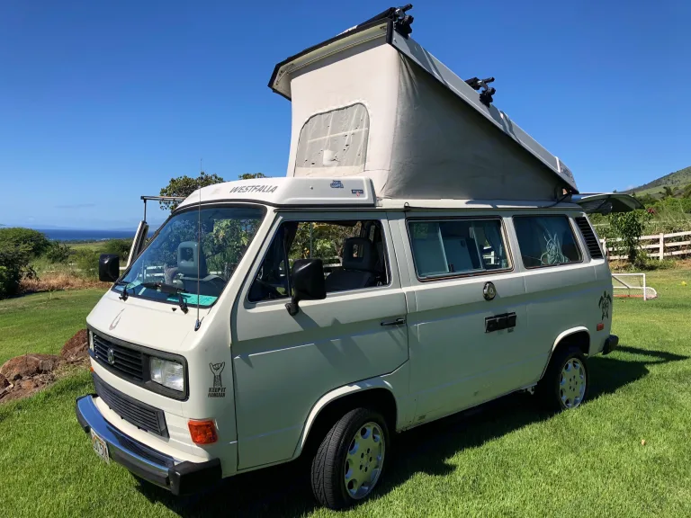 if you are up to the task of "baby sitting" the pilot light (just takes patience and a certain technique for lighting) Then have at it. Otherwise, I DO NOT advertise this camper with a fridge. I do supply an Xtreme Igloo Cooler that does very well in keeping your food cold, assuming you keep the ice supplied of course.The Rules of The Van 1) Not allowed to drive up Haleakala 2) No smoking 3) No pets 4) No towing 5) Use only highest octane fuel - 92 6) Van must be returned full of fuel. 7) You must have full coverage on at least 1 vehicle you personally own. 8) No Driving the "backside" from Hana You will know you have gone too far when the pavement ends and it becomes a 4 wheel dirt road 9) You must take a shuttle to the VAN in Kaanapali (just north of Lahaina in West Maui.) The cost is only $25 per person (plus tax) I DO offer Airport Drop OFF for $50 but we longer offer Airport Pick UP since we have found the shuttle service is much faster (and the same price) than me driving to the airport to pick you up (due to West Maui traffic going TO Kahului) 8) Check in 3pm and Check Out is 11am. These are our standard times, exceptions can be made IF the schedule allows and we have adequate time for cleaning and maintenance.Still not sure about camping for your Hawaii vacation? Well, let me tell you. This is all about beating the crowds. Going left when everyone else goes right. This is not the kind of stuff you get staying at some overpriced resort with the masses. Welcome to the Real Maui. You will see and feel what usually only the locals get to experience. True Intimacy with the Pacific Ocean and all that Maui has to offer. But you Need the quintessential surf van to make it happen. The Westy!This one is nothing like most other VW Campers you see online. Unlike most Maui VW campers (owned by big companies) that are rented to the masses and look nothing in person like they do in the photos. This van is special. Why? Well it is our baby. Named “FE” after the Spanish word for Faith. She’s a 1987 VW Westfalia Vanagaon designed to bring you straight to the Aloha Shaka vibes and of course the Surf. It’s also equipped with an awning for extra shade, two 12V deep cycle batteries that run a power strip for all your electronics. (Additional solar panels available to rent if you plan to camp for extended periods)We also have a wall mounted TV and Built in DVD player so you can watch movies as the waves crash outside your van