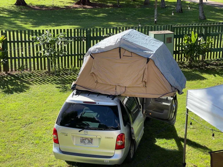 This is a super cozy Mazda van with a rooftop tent that sleeps three comfortably. It also comes with two beach chairs, beach towels, a cooler and some other items to make your vacation really comfortable. It’s a really affordable way to vacation on this beautiful island.Extremely reliable, able to go anywhere, perfect for your Maui adventure. AC works great inside of the van.What's includedWith this little van you also get two sleeping bags, two beach chairs, a cooler and we have other beach items that are available upon request.RecommendationsThis little van can go pretty much anywhere! Great on gas and plenty a room for big groups. It seats 7 comfortably.