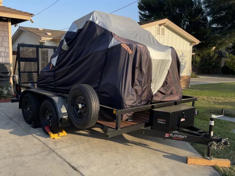 Need a trailer that will fit your off-road toys? This is the perfect trailer for that! It has multiple tie down locations and a ramp that facilitates loading toys. This trailer can be used for work too, it’s capable of carrying 7,000 lbs of load. The trailer has a round 7 pin connector with trailer brakes, spare tire, removable ramp, LED lights, 2 5/16” ball, and a lockable storage bin on the tongue. What's includedSpare tire, lockable storage, hitch accessories, tie down strapsRecommendationsWe use this trailer to take our RZR out to the desert and trails. We also put it to work loading 4,500 lbs of flooring and also loading it with demo carpet, and tile for the dump. Other things to notePlease respect our trailer and be aware of its width when maneuvering. Please return the trailer clean.