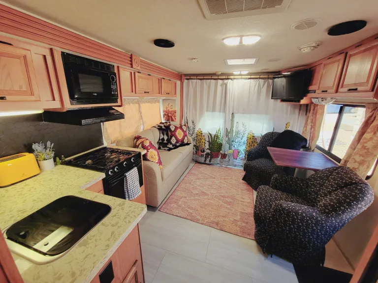 This Coachmen was just completely remodeled from floors to knobs and has every touch of a home. The cozy queen size memory foam mattress will have you fast asleep. Other occupants can also choose from a new pull out sofa or the oversized queen sleeping bunk above the cab.This is meant to be long term usage only. The rates you see is for 1 months or longer.What's included• Memory foam mattress