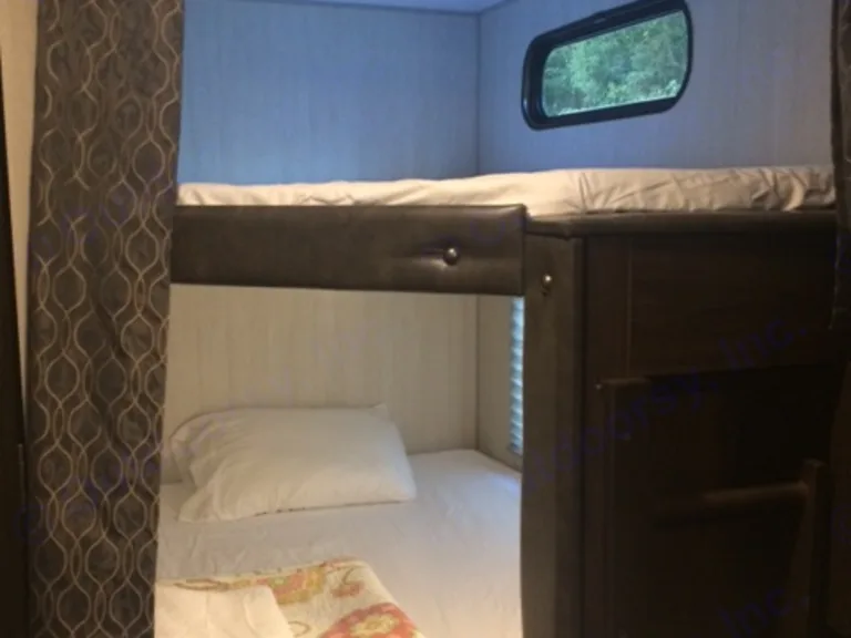 *A Brand New 2019 Forest River Grey Wolf 23 BDH Bunkhouse with 1 slide. This RV has a Queen Size Bed with private sleeping area (2), 2 expansive bunk bunks which sleeps 2 (4 if small children) and a drop down table (sleeps 1). It's equipped with central heat and A/C, fireplace for warmth or just mood lighting, microwave oven, gas grill cook top, large fridge, farm sink, AM/FM Radio and an overhead TV.