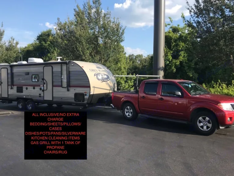 We prefer to deliver only but this makes your vacation so much more enjoyable. You will arrive at your destination to a fully set up and equipped RV. Indoors, you will have clean sheets and pillows, a kitchen with a coffee maker and toaster, and a bath with towels, washcloths and soaps. Outdoors, you will have folding camp chairs, a ground cover rug and grill. You will not be charged extra for any of these amenities. There is one flat delivery fee of $100. within a 50 mile radius of the Orlando only.